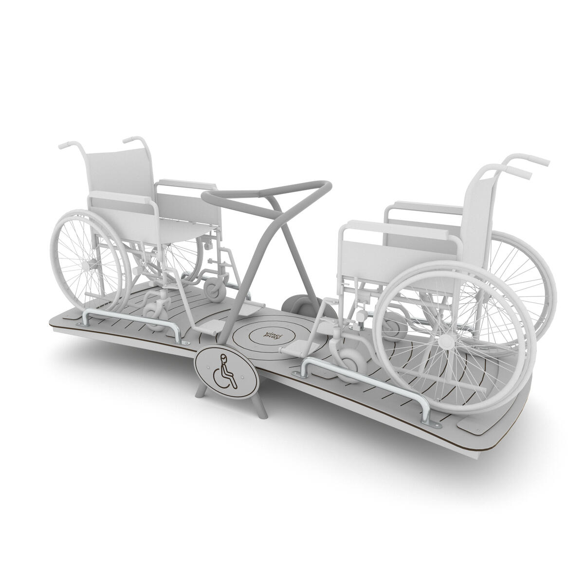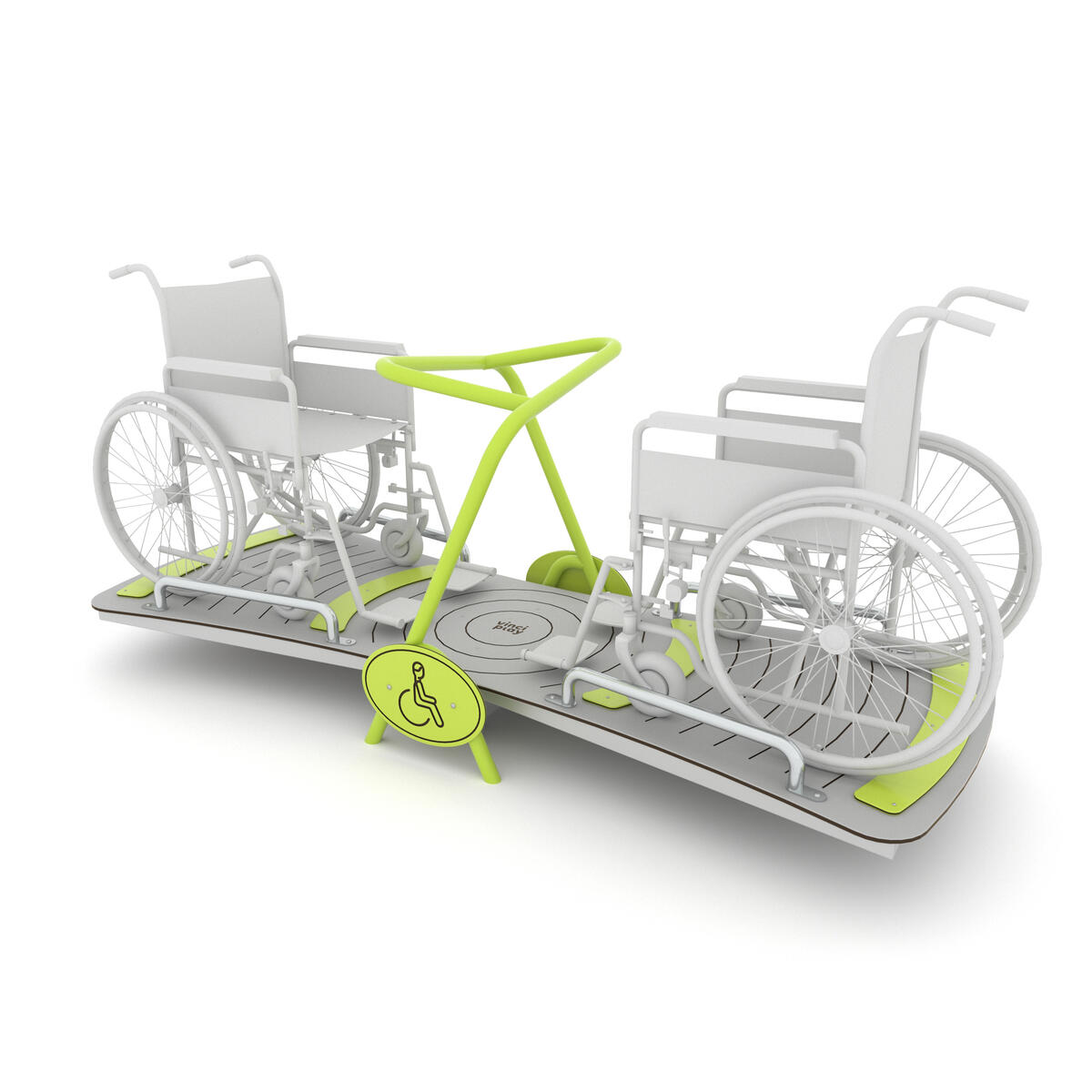 En unik gungbräda som möjliggör för barn med funktionsvariationer att kunna delta i leken och socialt samspela med varandra. Den gungande rörelsen uppåt möjliggörs genom att lägga tyngden långt bak på den ena plattformen och samtidigt höjs då den motsatta tillgänglighetsanpassade plattformen. Rörelsen kommer indirekt påverka bålens muskulatur och bygga balansstrategier samt förbättra koordinationen. Gungbrädan kan användas av alla och det finns plats för en rullstolsburen person och upp till två utan rörelsehinder. Konstruktion av stål på aluminiumplatta. Färdiga betongfundament medföljer. Monteras enligt installationsmanual.