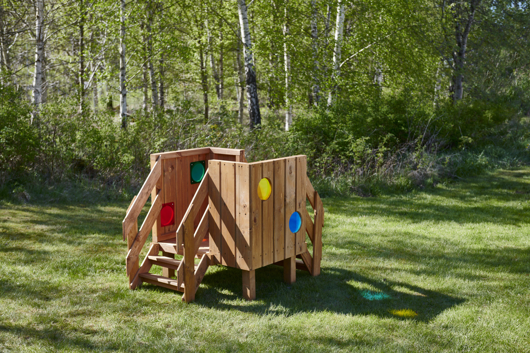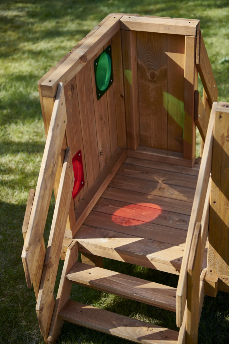 Denna äventyrliga upptäcktsramp erbjuder oändliga timmar av lek i utemiljön som t ex kurragömma, tittut-lek och fantasifulla rollspel. Stimulerar barnen till aktiv och underhållande lek medan de springer runt och utforskar titthålsfönstren. När ljuset bryts genom det färgade plexiglaset skapas fantastiska sensoriska upplevelser som stimulerar det visuella sinnet. Barnen tar sig upp på rampen via en trappa med räcke på ena sidan, eller via en sluttande ramp på motsvarande sida. Tillverkad av FSC-certifierad furu som är ytbehandlad med en vattenbaserad lack. För markförankring behövs 4 st av 161297, eller 151133 för ytmontering. Levereras omonterad.