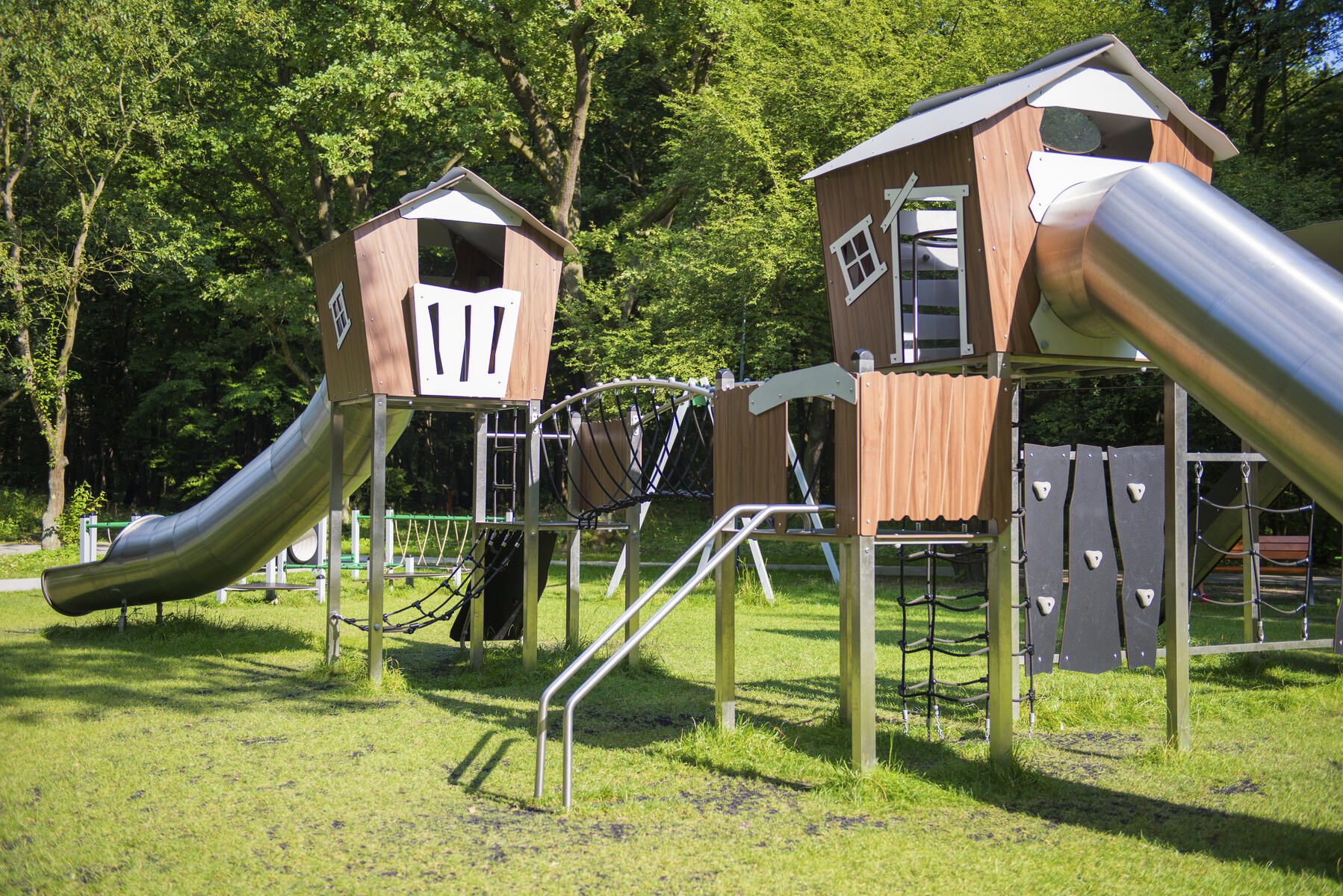 2 lekhus, tunnelrutschkana, rutschkana, klätterväggar, flera klätternät och takfönster. Rostfritt stål, PE och HPL. Vid installation ska alltid den medföljande manualen användas. Den senaste versionen finns att tillgå på begäran. Leverantörens artikelnummer Crooc 0301