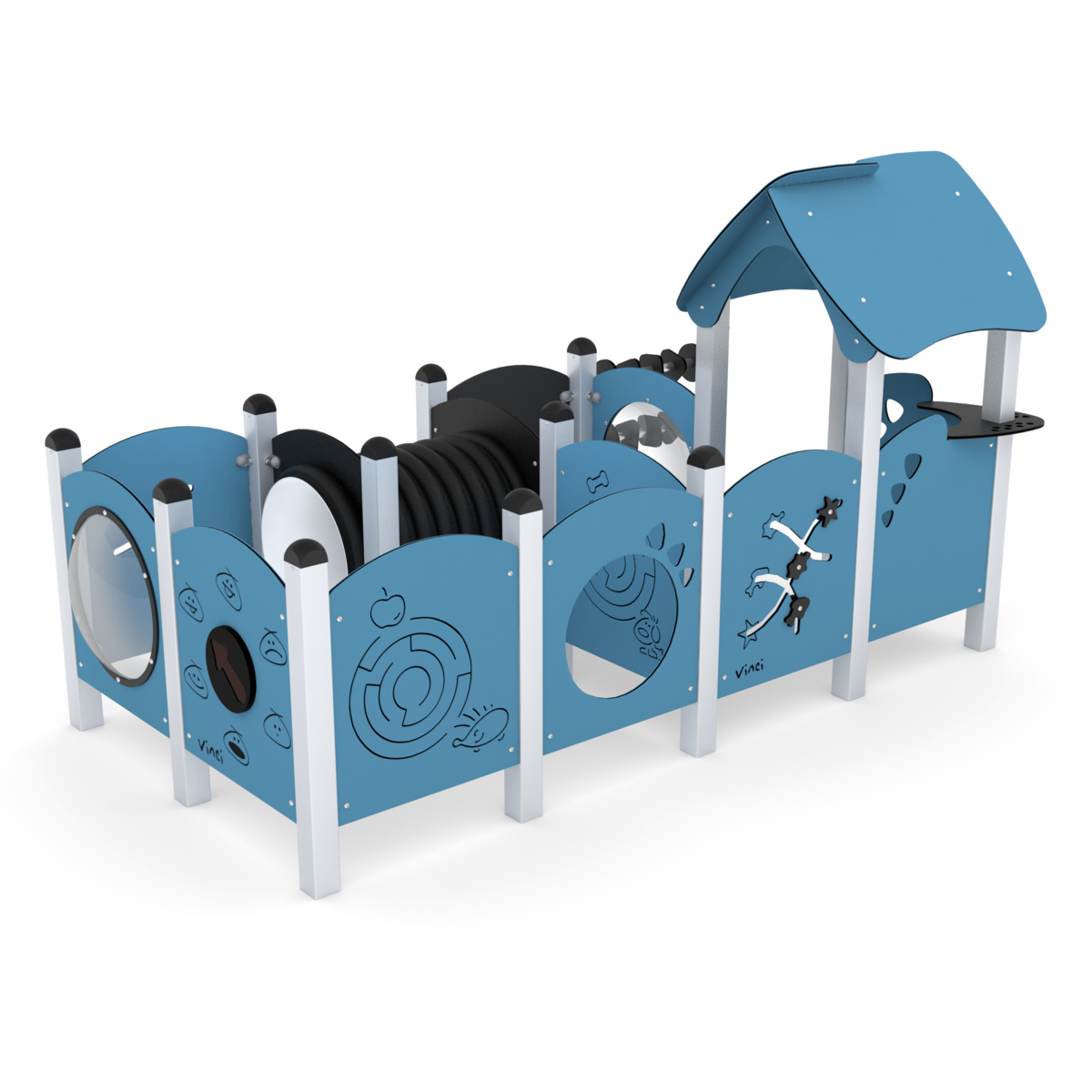 Av stål med tunnel och flera lär-/lekpaneler. Vid installation ska alltid den medföljande manualen användas. Den senaste versionen finns att tillgå på begäran. Leverantörens artikelnummer Minisweet 0108