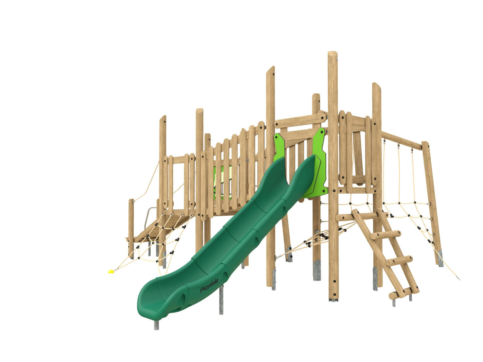 En mångsidig konstruktion som ger barnen en komplett lekupplevelse i harmoni med naturen. De två tornen är utformade för att enkel kunna ta sig upp på flera olika sätt. Lekställningen erbjuder ett stort utbud av varierande klätterlek, rutschkana, balanshinder och sensoriska lekpaneler. Här finns allt för timmar av aktiv och fantasifull lek. Det robusta markfästet i stål håller stolparna av limträ ovan mark och skyddar mot fukt och slitage. Färgalternativ och rutschbana av rostfritt stål finns tillgängligt vid förfrågan. Leverantörens artikelnummer QWDHED005-1