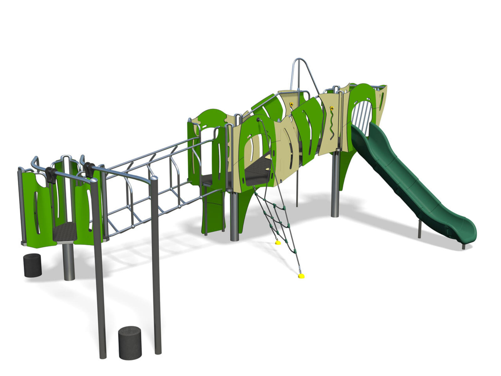 En mångsidig lekstruktur som är fylld med aktiviteter där både kropp och koordination tränas. Med funktioner som brandmansstång, snedställda bågformade klätterstänger, lutande bro och armgång får barnen både fysisk utmaning och lekfull rörelse. En perfekt enhet för lekplatser där aktivitet och variation står i fokus. Tillverkad i rostfritt stål och slitstarka material som kräver minimalt underhåll. Färgalternativ och rutschbana av rostfritt stål finns tillgängligt vid förfrågan. Leverantörens artikelnummer BC/VAN/C1