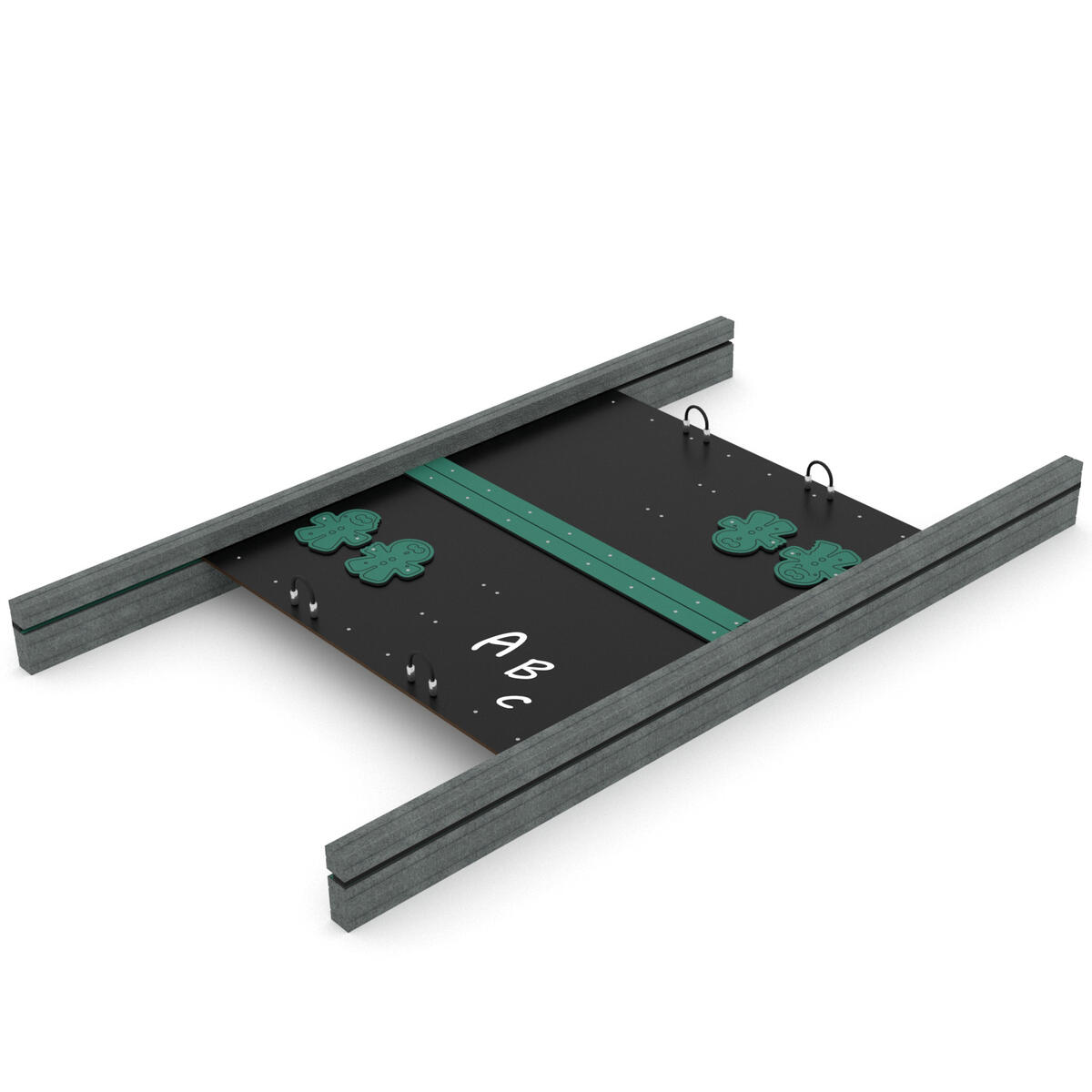 Ett schackbord med två tilhörande pallar. Kärnan på alla paneler är av återvunna rep och fiskenät. Som en del i den cirkulära ekonomin lägger dessa hållbara och miljövänliga material grunden för framtidens lekplatser med lägre koldioxidutsläpp. Vid installation ska alltid den medföljande manualen användas. Den senaste versionen finns att tillgå på begäran.