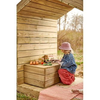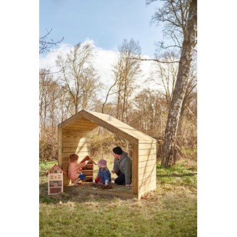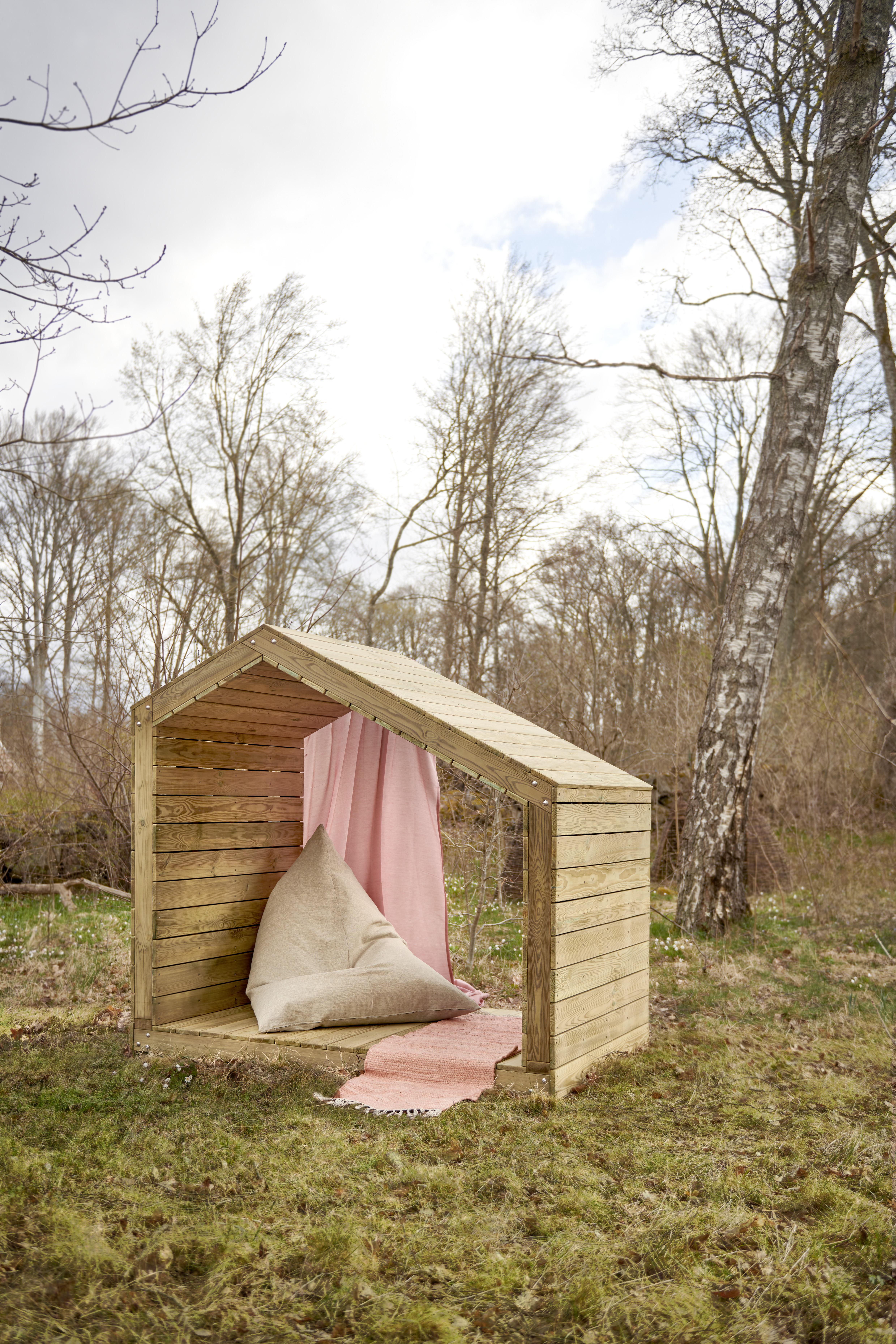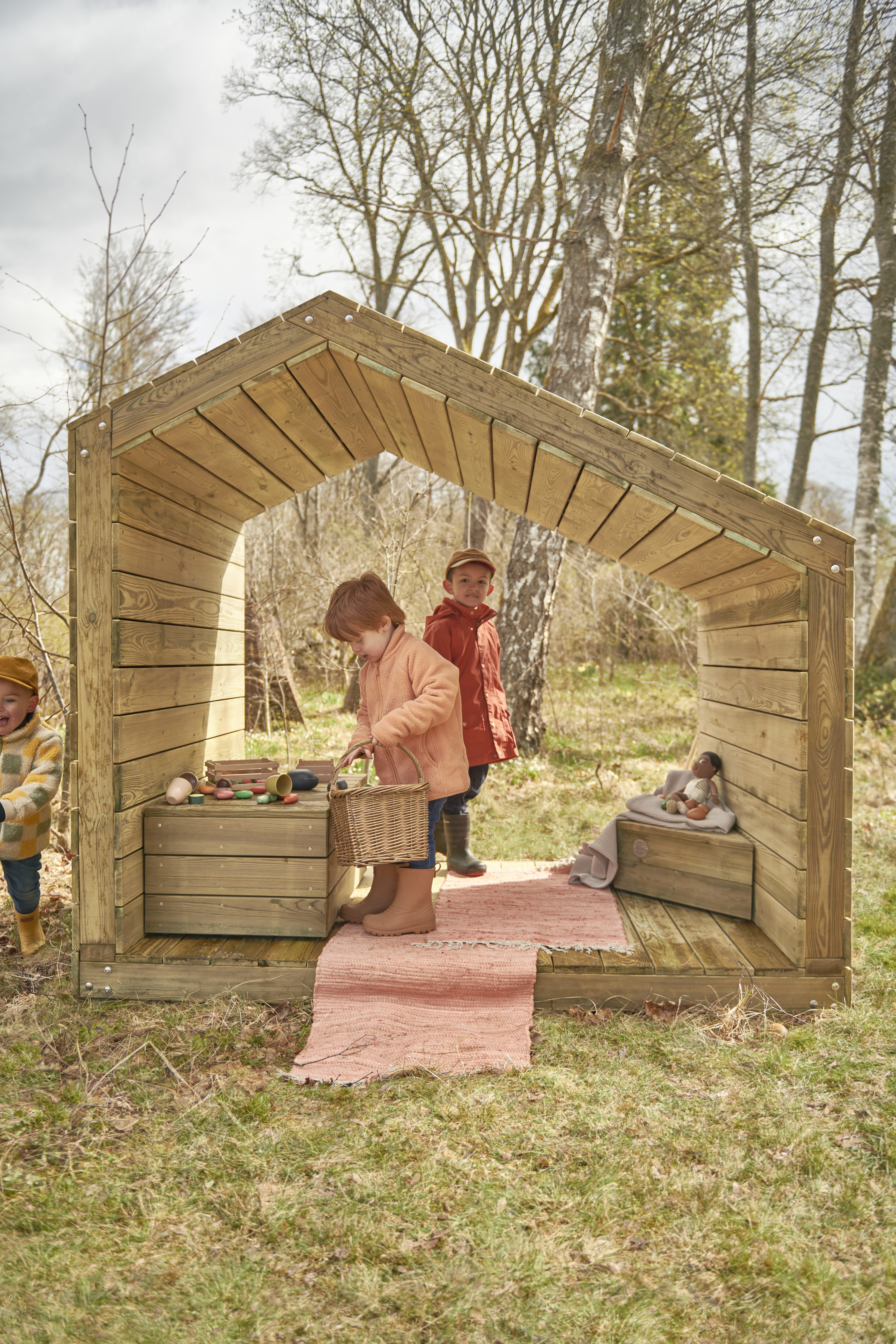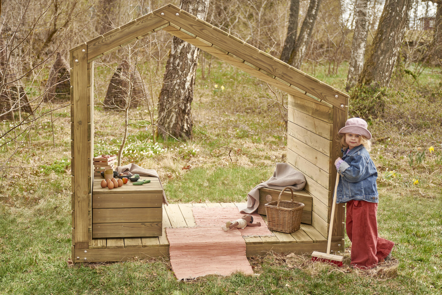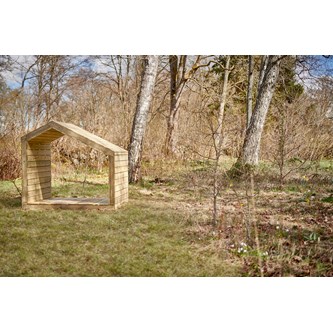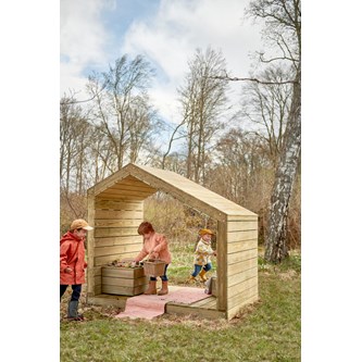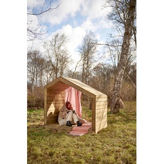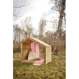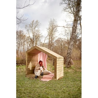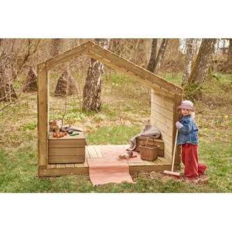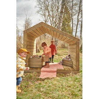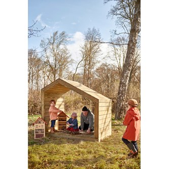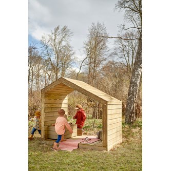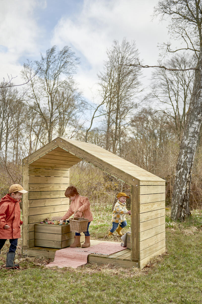 Ett snyggt och modernt hus som skapar ett rum i utomhusmiljön med goda avkopplingsmöjligheter för att kunna dra sig undan en stund, men som fungerar lika bra som en social mötesplats. Huset har en öppen design som inger en trygghet, då det är lätt för både för barnen och pedagogerna att ha en överblick över vad som händer på gården. Levereras monterat. Av massiv, FSC-märkt furu. Mått: 120x160 cm. Lösning för nedgrävd markförankring eller ytmontering väljs under tillval.