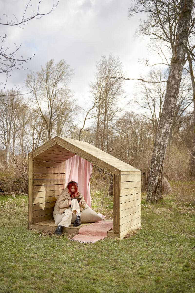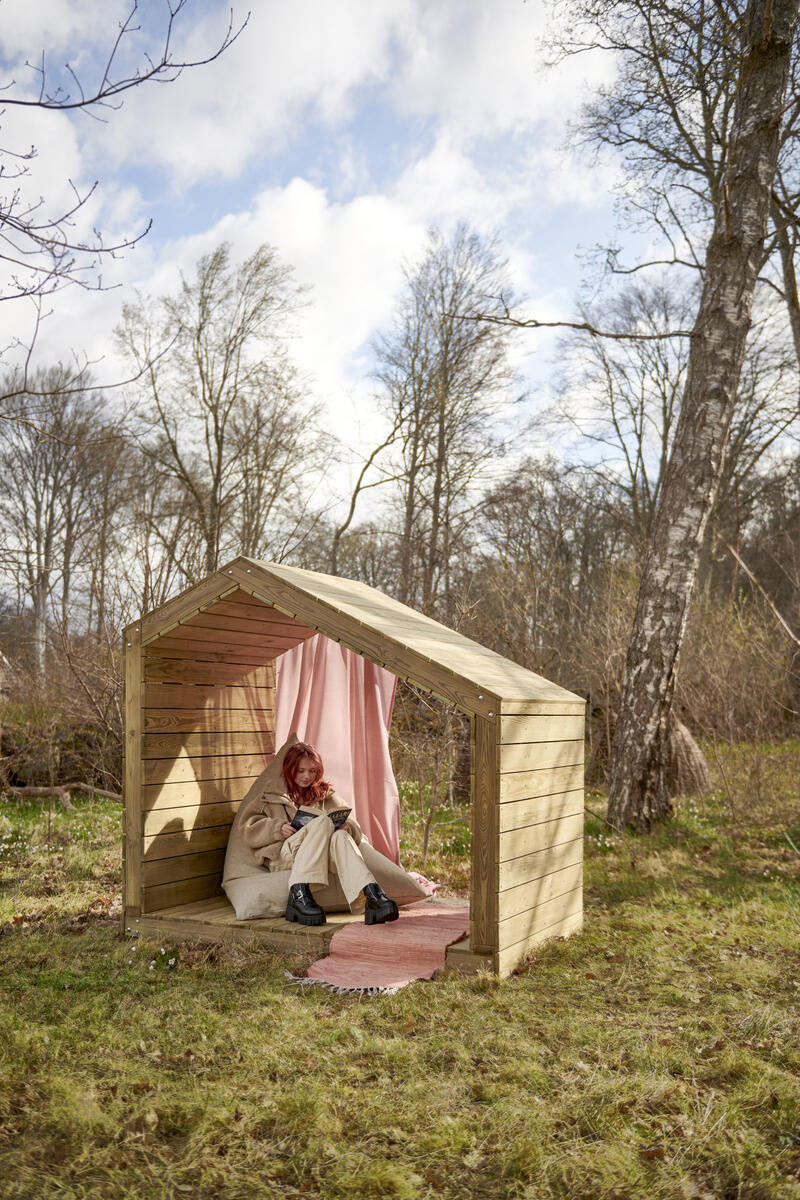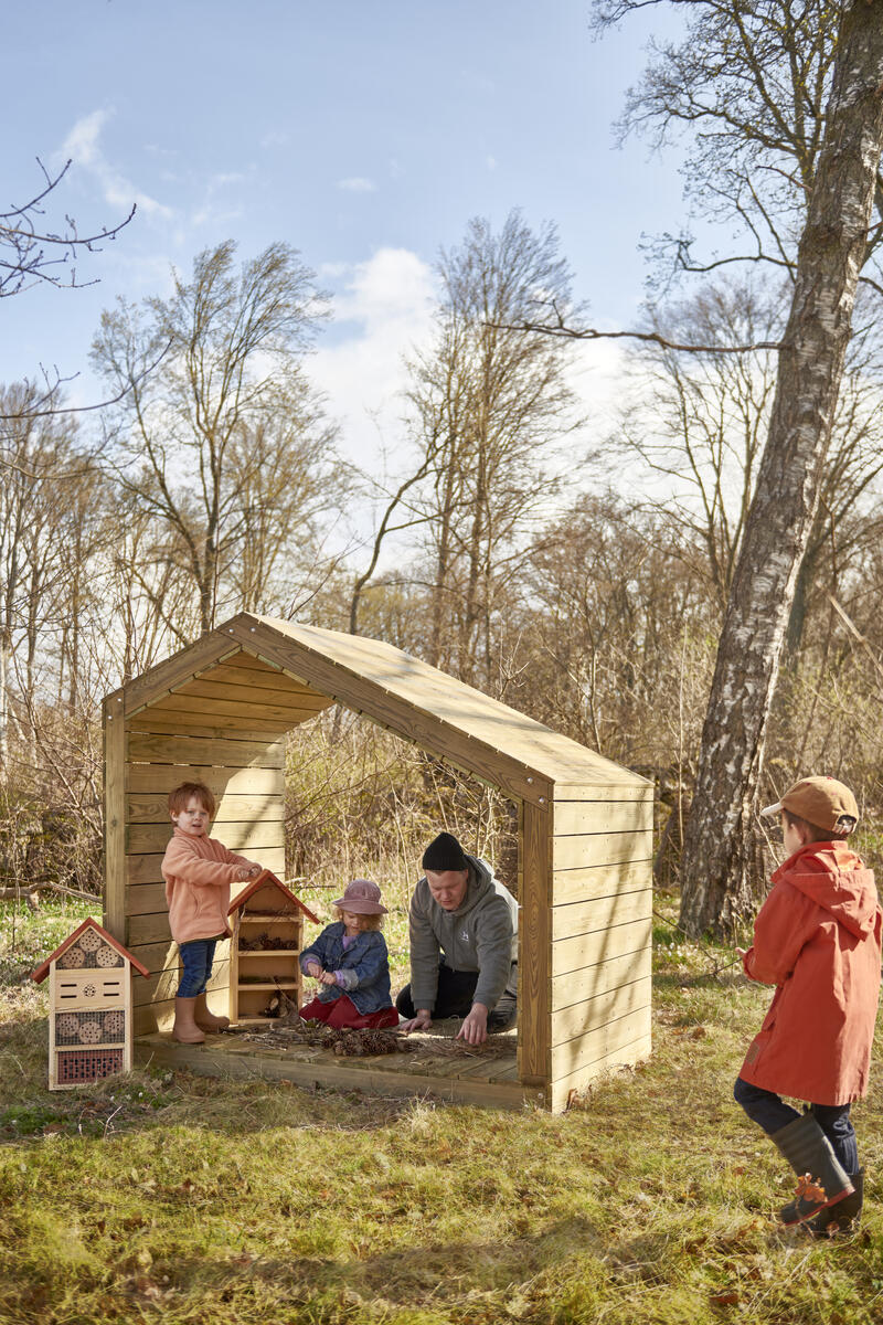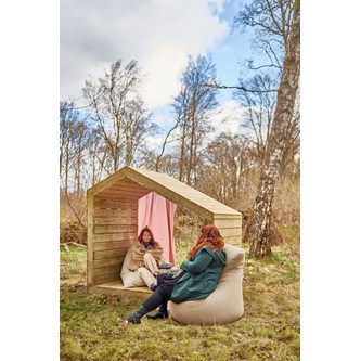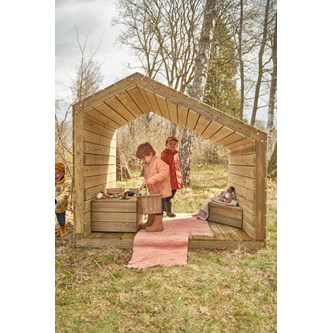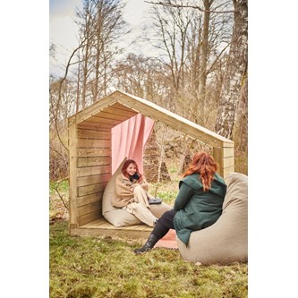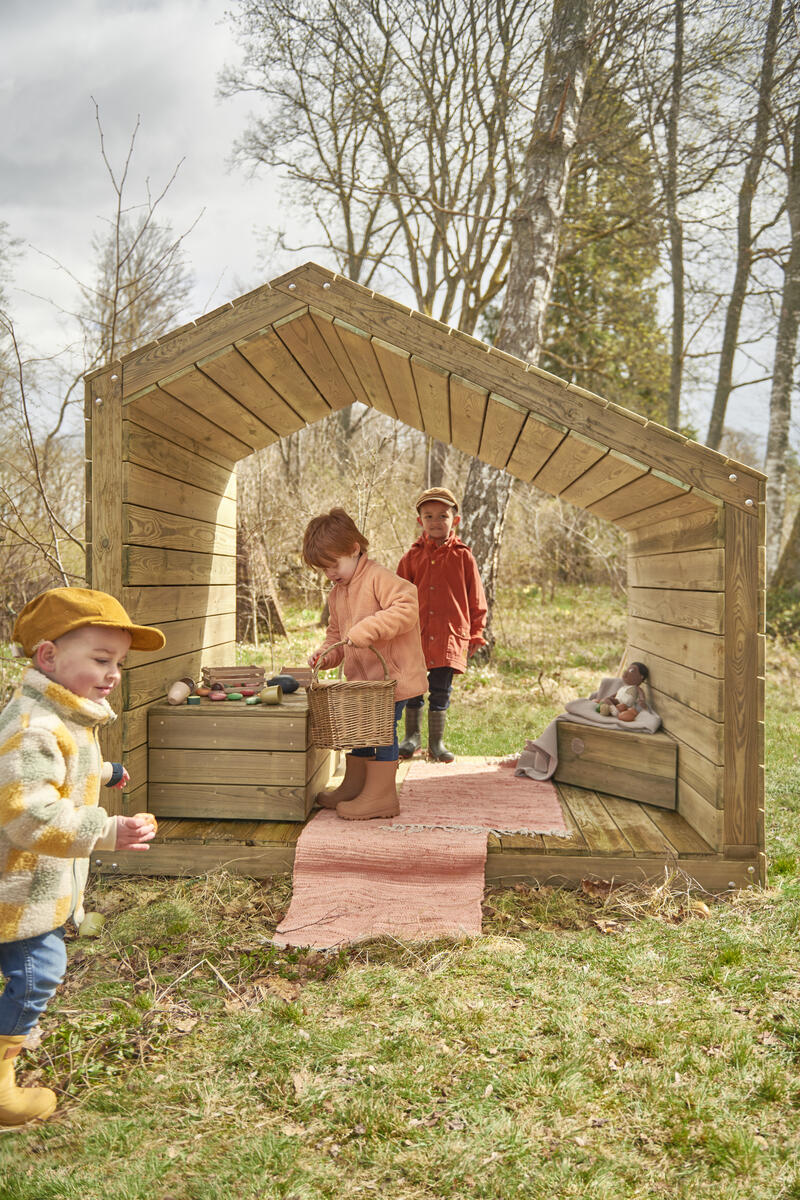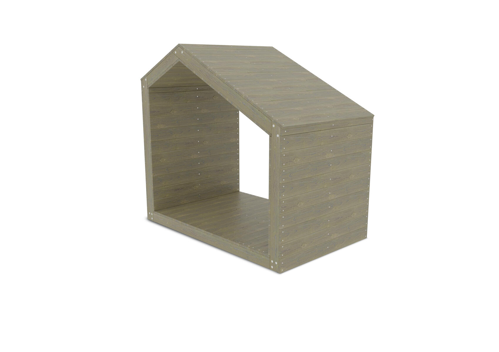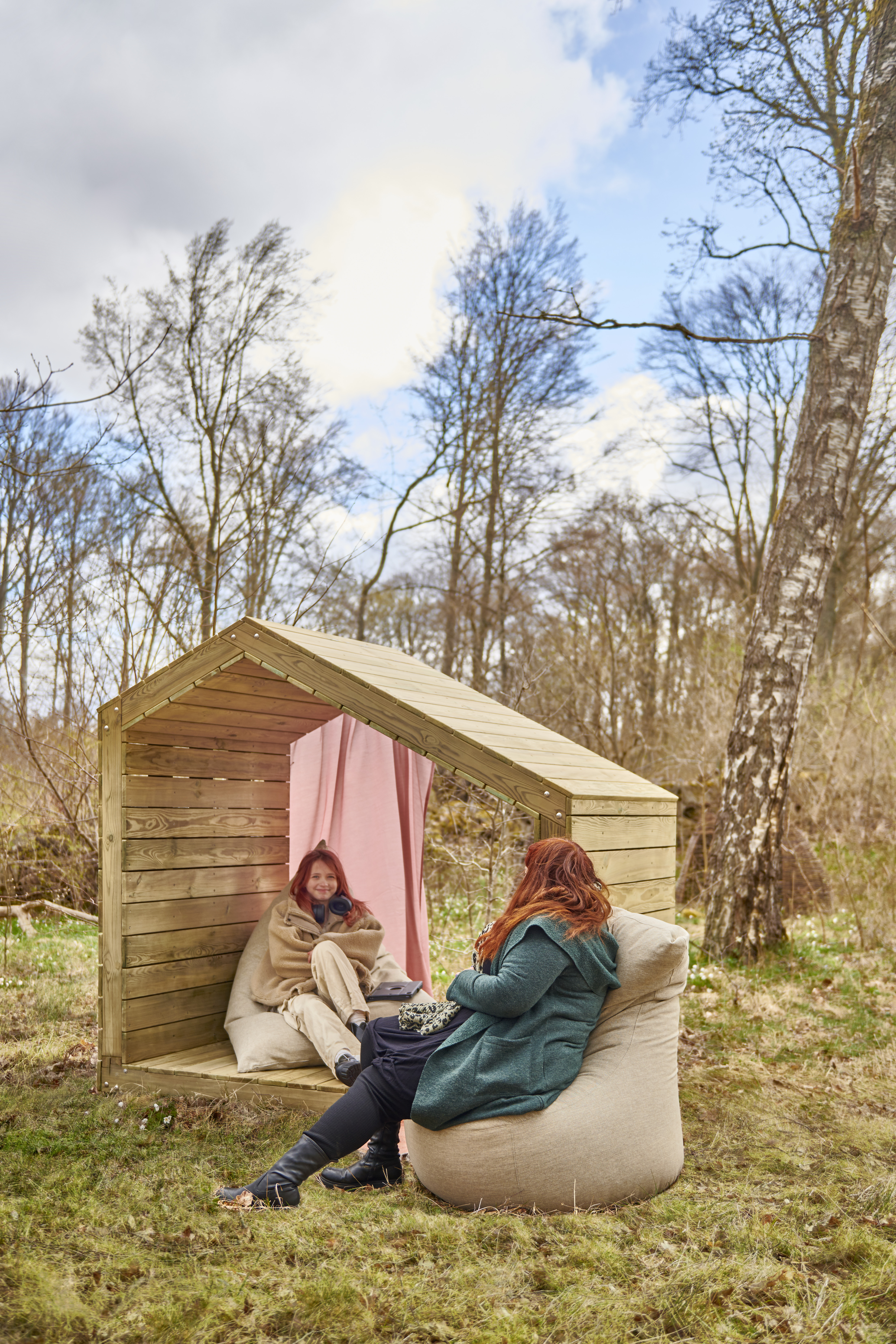 Ett snyggt och modernt hus som skapar ett rum i utomhusmiljön med goda avkopplingsmöjligheter för att kunna dra sig undan en stund, men som fungerar lika bra som en social mötesplats. Huset har en öppen design som inger en trygghet, då det är lätt för både för barnen och pedagogerna att ha en överblick över vad som händer på gården. Levereras monterat. Av massiv, FSC-märkt furu. Mått: 120x160 cm. Lösning för nedgrävd markförankring eller ytmontering väljs under tillval.