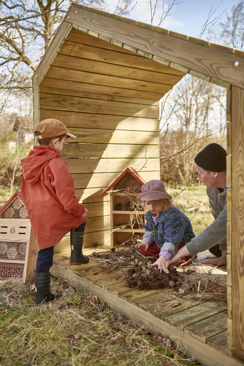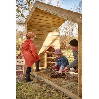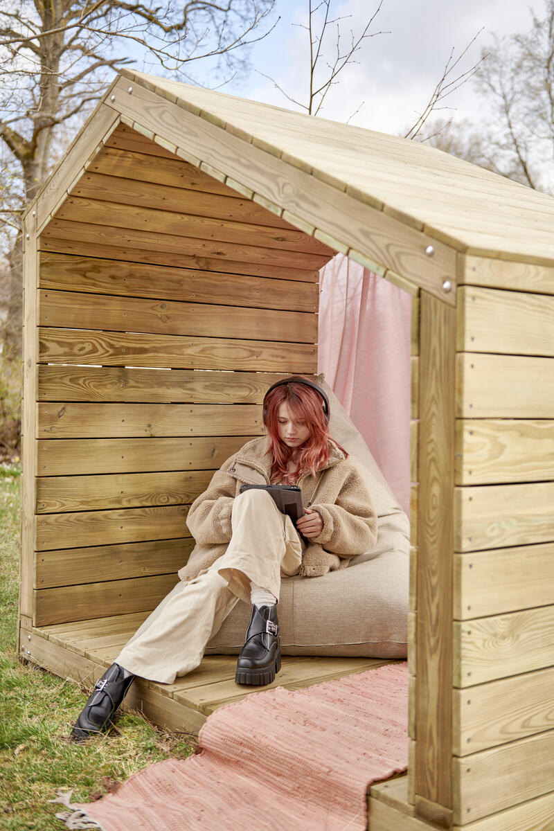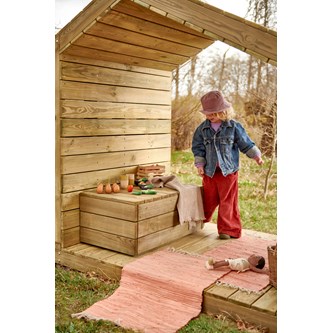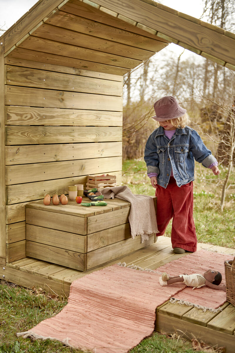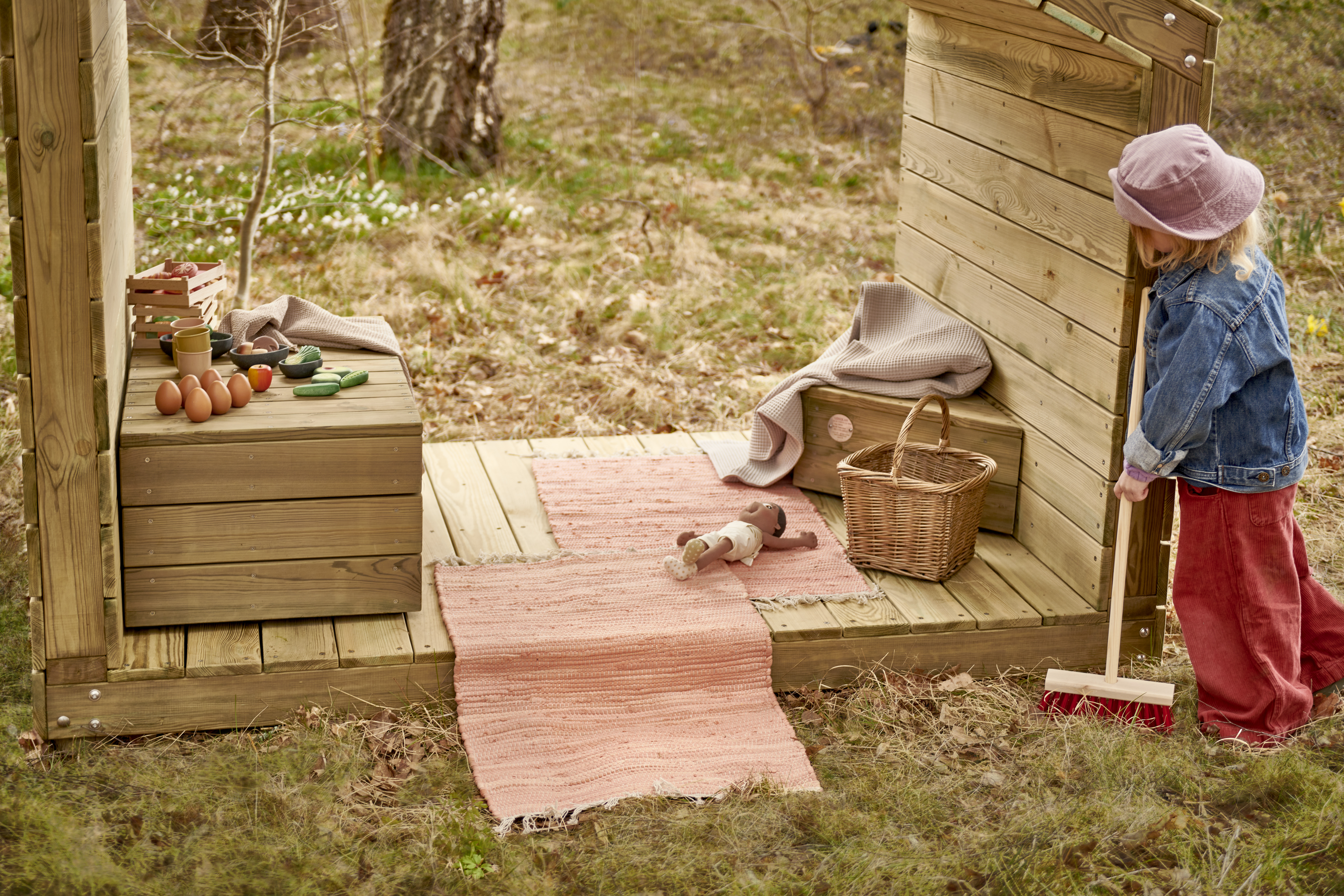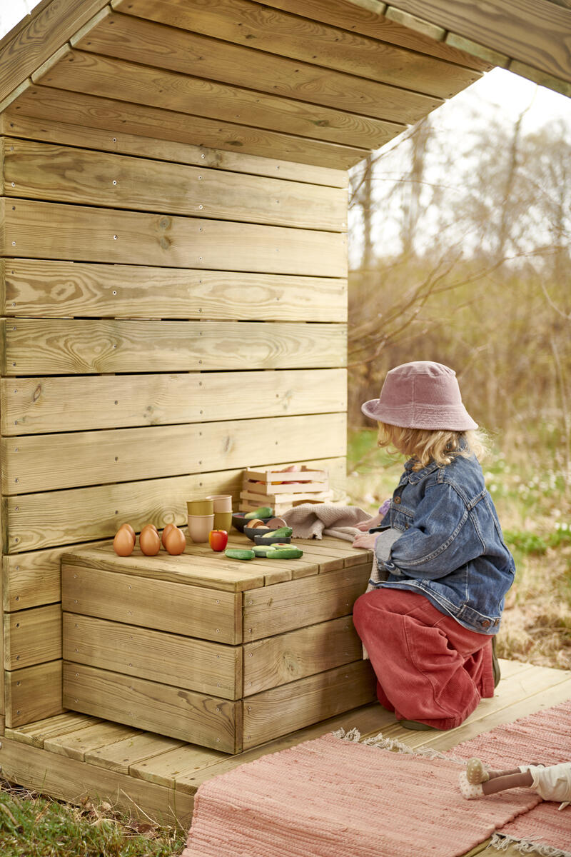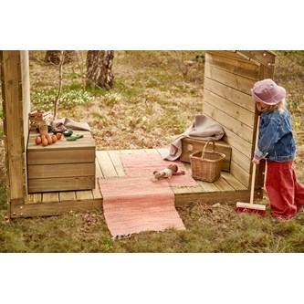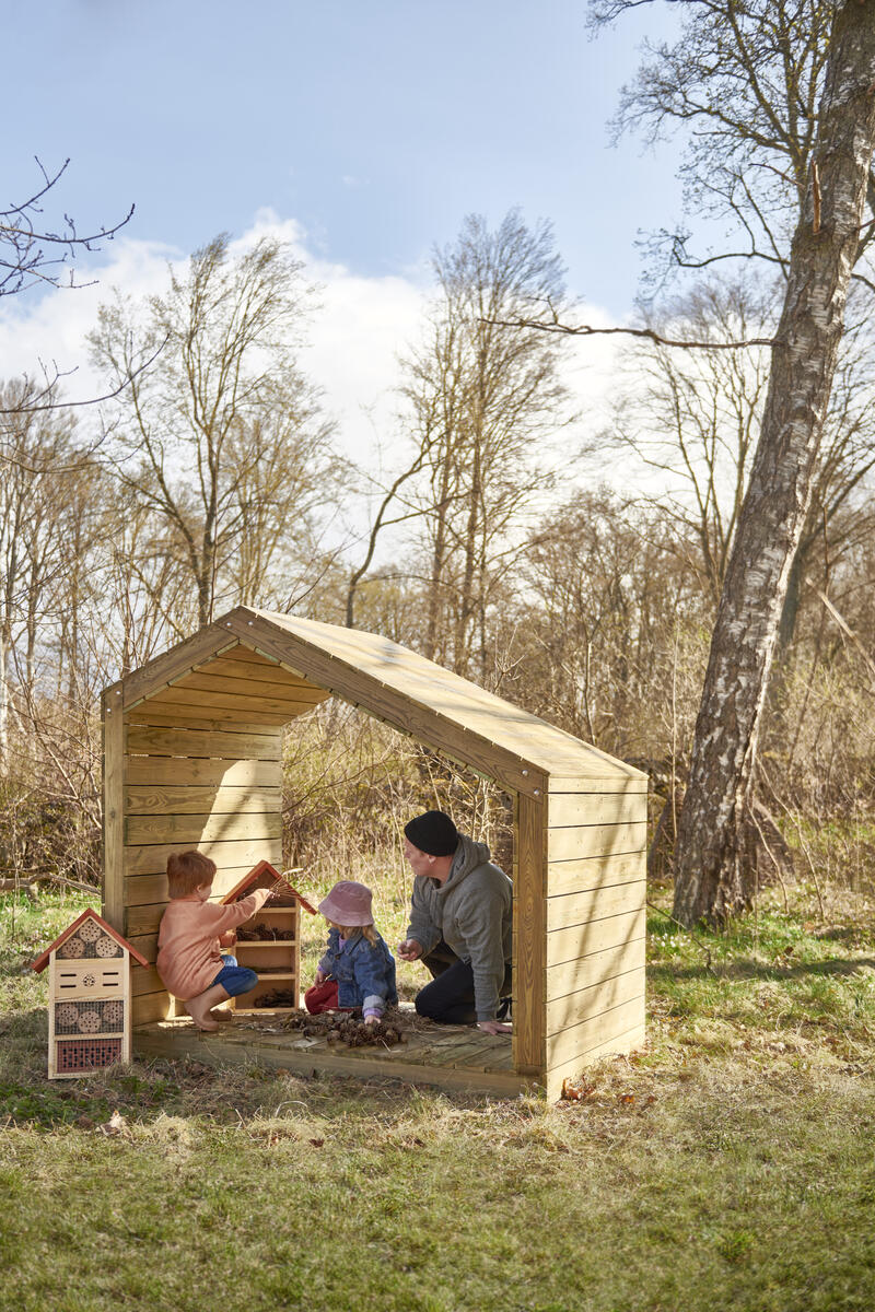 Ett snyggt och modernt hus som skapar ett rum i utomhusmiljön med goda avkopplingsmöjligheter för att kunna dra sig undan en stund, men som fungerar lika bra som en social mötesplats. Huset har en öppen design som inger en trygghet, då det är lätt för både för barnen och pedagogerna att ha en överblick över vad som händer på gården. Levereras monterat. Av massiv, FSC-märkt furu. Mått: 120x160 cm. Lösning för nedgrävd markförankring eller ytmontering väljs under tillval.