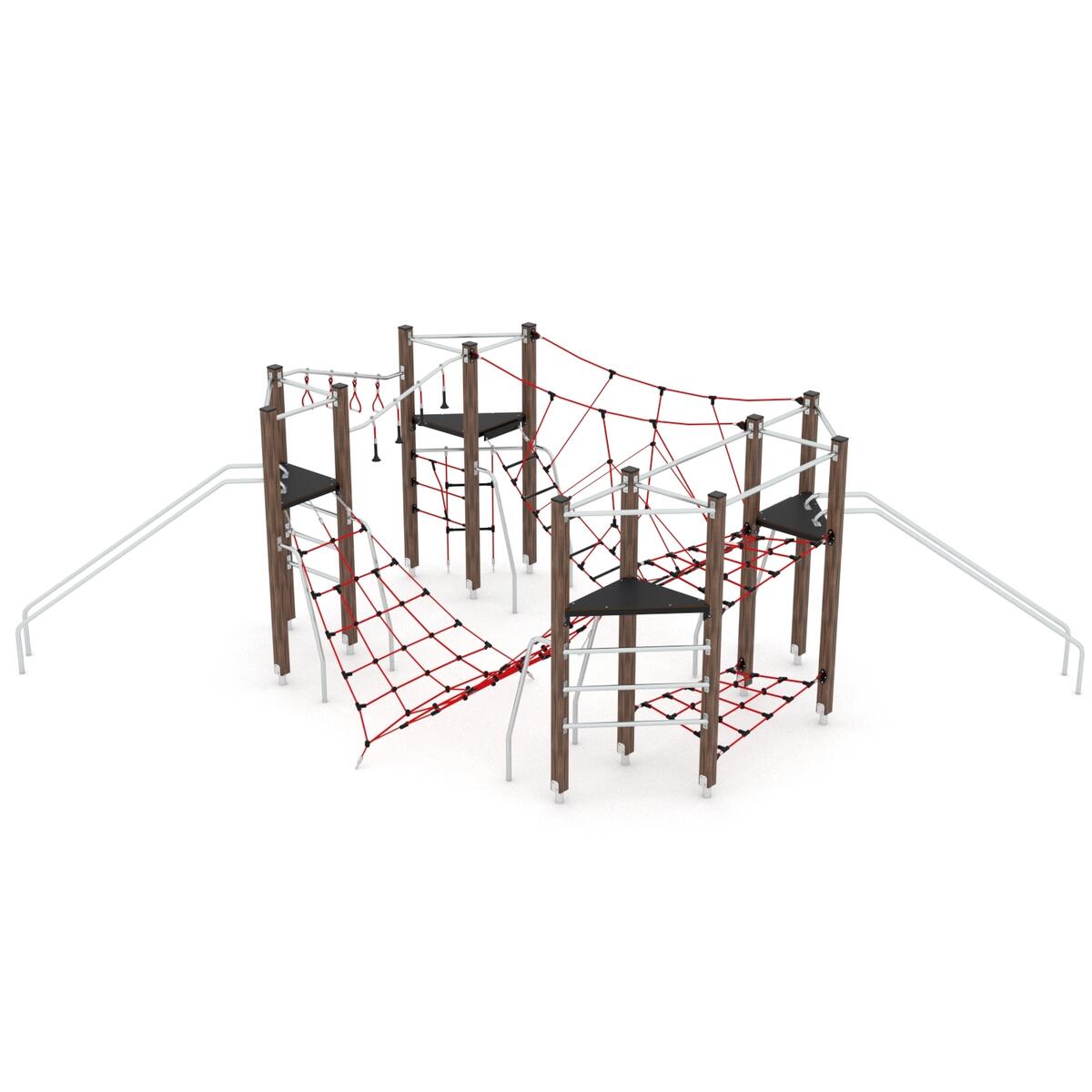 3 torn med klätterrep, nät, nätbro, stänger, stege och glidstänger. HDPE-paneler i multifärgad och HPL-paneler i övriga färger. Vid installation ska alltid den medföljande manualen användas. Den senaste versionen finns att tillgå på begäran. Leverantörens artikelnummer WD1452