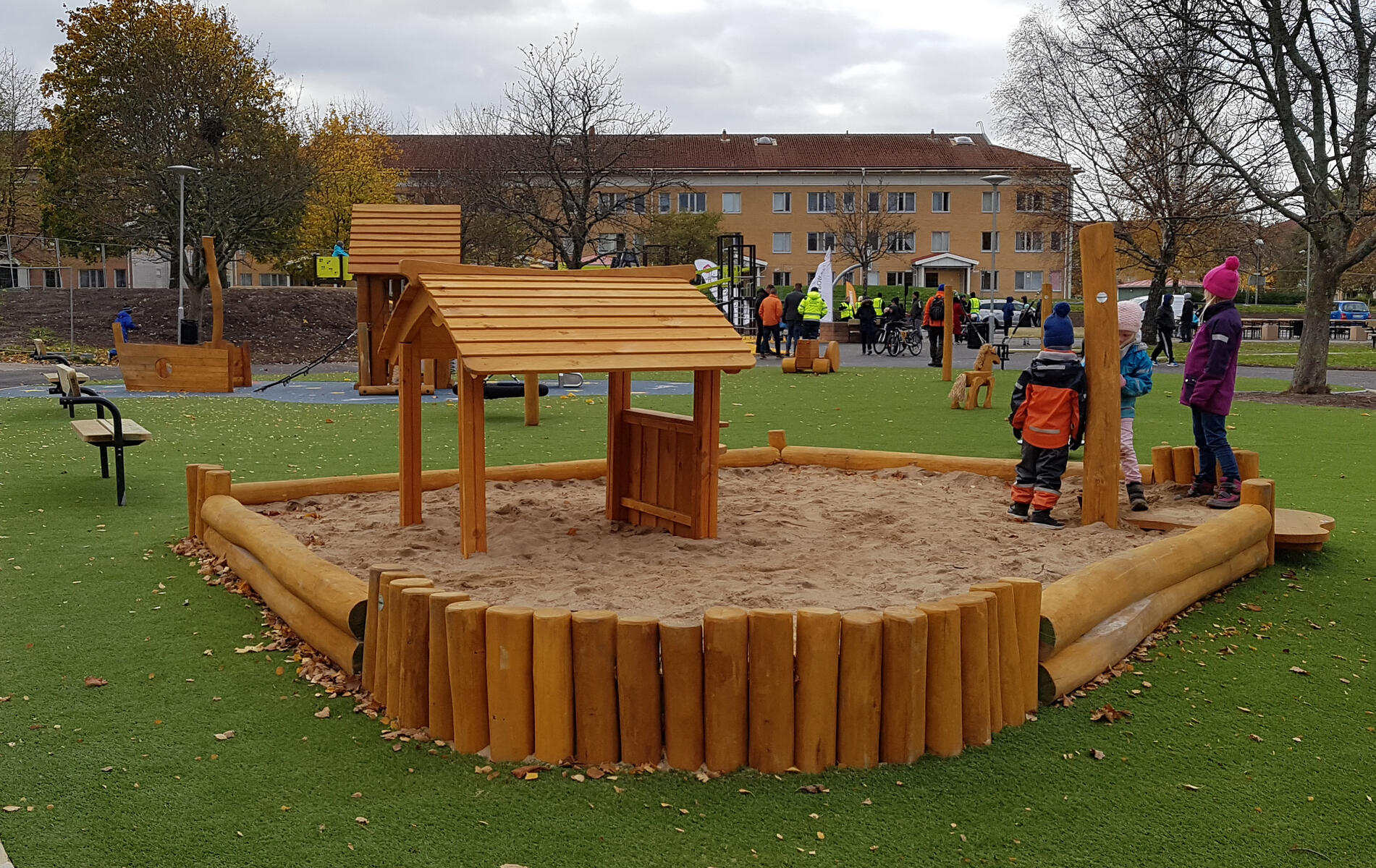 Bordet skapar bra förutsättningar för rollek och samarbete. Barnen kan tillsammans baka sandkakor, leka affär eller köra med olika fordon. Ett rejält bord som är tillverkat av FSC-certifierad Robinia.