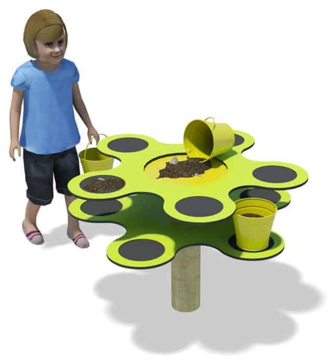 Bordet skapar bra förutsättningar för rollek och samarbete. Barnen kan tillsammans baka sandkakor, leka affär eller köra med olika fordon. Ett rejält bord som är tillverkat av FSC-certifierad Robinia.