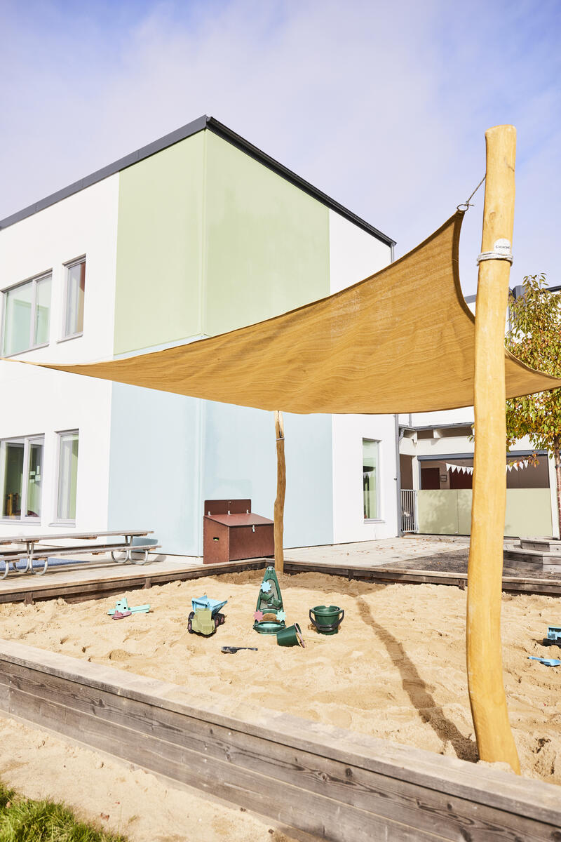 Ett komplett solsegel på förskolan eller skolan ger skön och svalkande skugga under varma dagar och skyddar mot starka UV-strålar. Ett solsegel skapar möjligheter för rumsskapade i utemiljön och förutsättningar för att kunna förlänga vistelsen utomhus. Lättare regn och vind släpps igenom duken. Duken är inte snötålig och för att förlänga livslängden rekommenderar vi att det tas ner på vintern. Duken är tillverkad av kraftig HDPE-väv som blockerar 90 % av skadliga UV-strålar. Innehåller 4 stolpar av FSC-certifierad robinia, beslag och solsegel.