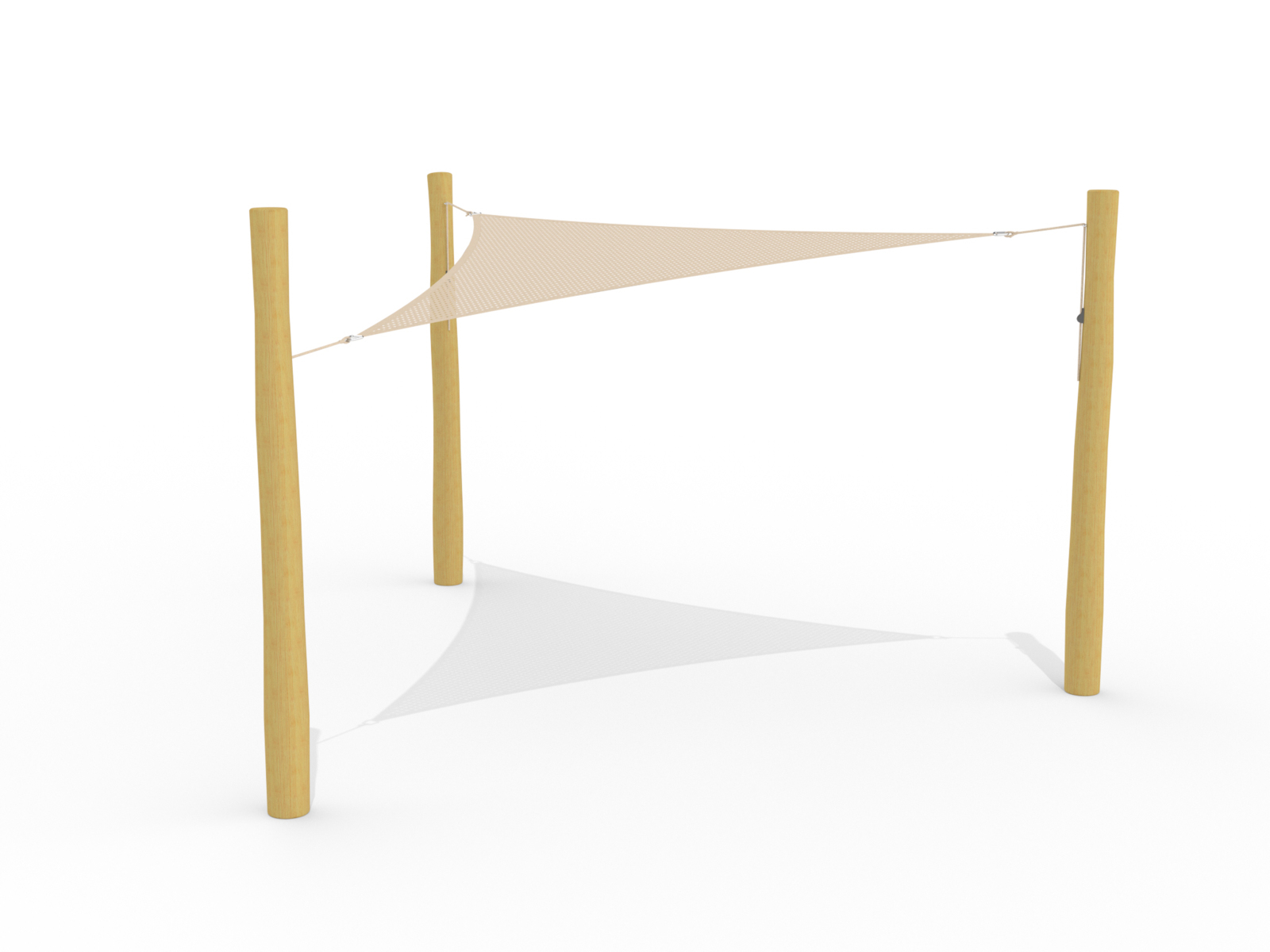 Ett komplett solsegel på förskolan eller skolan ger skön och svalkande skugga under varma dagar och skyddar mot starka UV-strålar. Ett solsegel skapar möjligheter för rumsskapade i utemiljön och förutsättningar för att kunna förlänga vistelsen utomhus. Lättare regn och vind släpps igenom duken. Duken är inte snötålig och för att förlänga livslängden rekommenderar vi att det tas ner på vintern. Duken är tillverkad av kraftig HDPE-väv som blockerar 90 % av skadliga UV-strålar. Innehåller 3 stolpar av FSC-certifierad robinia, beslag och solsegel.