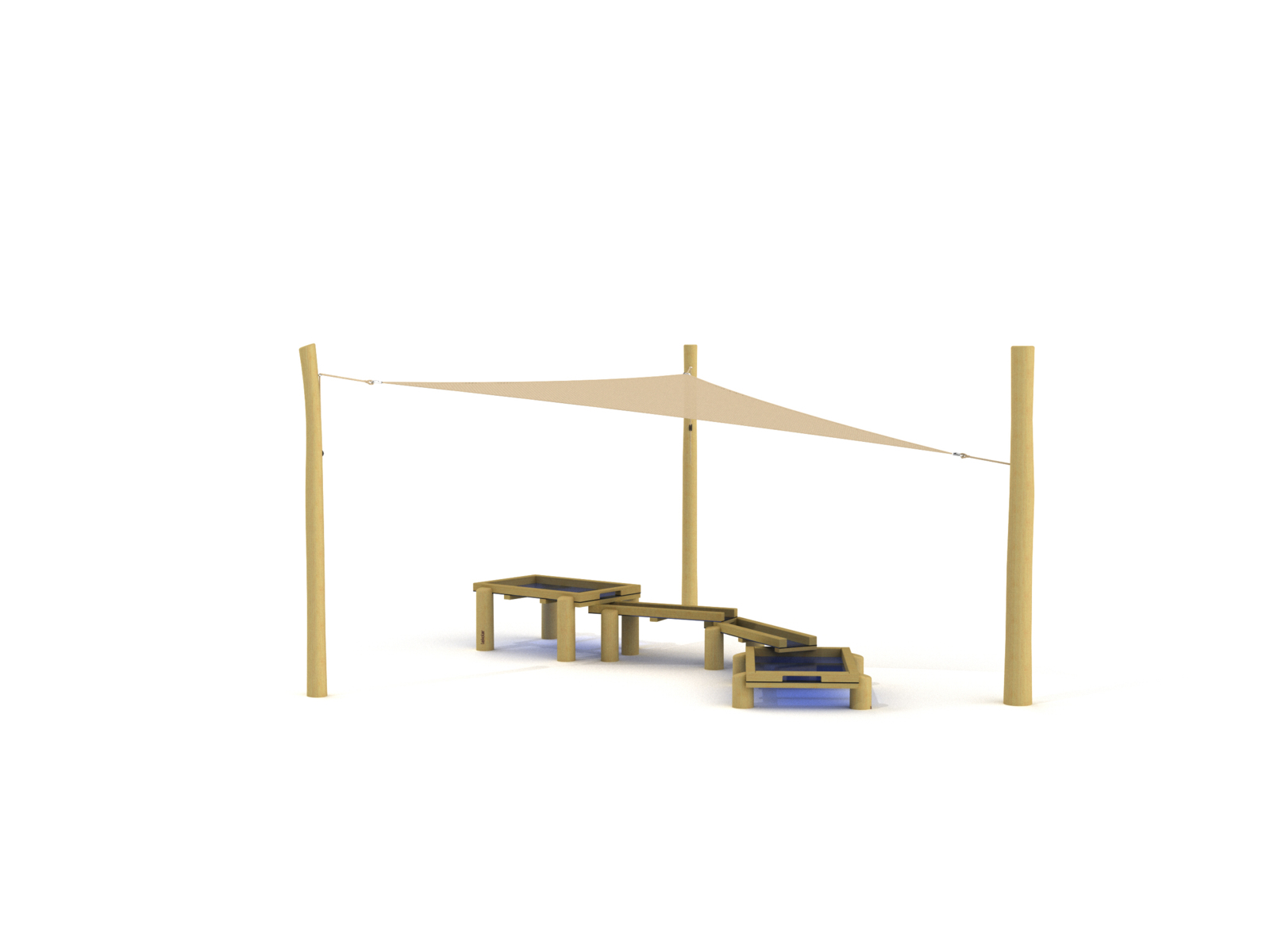 Robinia ger ett mjukt och naturligt intryck och smälter in fint i utemiljön. Denna kombination består av 2 vattenbord med 2 vattenrännor under ett skyddande solsegel. Den transparenta botten uppmuntrar till praktiskt utforskande och finurliga funderingar. Vattenlek som uppskattas, roar och stimulerar de flesta barn i all oändlighet. De bägge rännorna är 1m långa och har en öppen sida. Tillverkad av FSC-certifierad Robinia, ett träslag med hög motståndskraft mot väderpåverkan. Det har förmågan att absorbera minimalt med vatten och utmärker sig genom sin extremt långa hållbarhet. Botten av akrylplast. Monteras enligt installationsmanual.