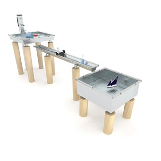 Robinia ger ett mjukt och naturligt intryck och smälter in fint i utemiljön. Denna kombination består av 2 vattenbord med 2 vattenrännor. Den transparenta botten uppmuntrar till praktiskt utforskande och finurliga funderingar. Vattenlek som uppskattas, roar och stimulerar de flesta barn i all oändlighet. De bägge rännorna är 1m långa och har en öppen sida. Tillverkad av FSC-certifierad Robinia, ett träslag med hög motståndskraft mot väderpåverkan. Det har förmågan att absorbera minimalt med vatten och utmärker sig genom sin extremt långa hållbarhet. Botten av akrylplast. Monteras enligt installationsmanual.