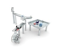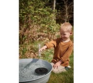 Ett stort vattensystem där många barn kan leka tillsammans. Vattensystemet är utrustat med tåliga vattenrännor av rostfritt stål, ett uppsamlingskar, vattenhjul samt en rolig vattenpump. För att undvika vassa kanter är de rostfria delarna klädda i transparent polykarbonat. Vattenpumpen höjer lekvärdet och kopplas enkelt ihop med trädgårdsslangen. Vattenlek uppskattas, roar och stimulerar de flesta barn i all oändlighet. Låt barnen utforska vattnets egenskaper, kontrollera vattnets rörelse och framfart i rännan med hjälp av de olika slussarna. När flera barn leker tillsammans runt en balja tränas samarbete och turtagning. Vid installation ska alltid den medföljande manualen användas. Den senaste versionen finns att tillgå på begäran.