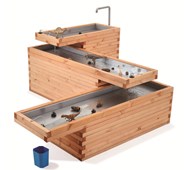 Robinia ger ett mjukt och naturligt intryck och smälter in fint i utemiljön. Detta vattenbord kan kombineras med vattenrännor på olika sätt. Den transparenta botten uppmuntrar till praktiskt utforskande och finurliga funderingar. Vattenlek som uppskattas, roar och stimulerar de flesta barn i all oändlighet. Tillverkad av FSC-certifierad Robinia, ett träslag med hög motståndskraft mot väderpåverkan. Det har förmågan att absorbera minimalt med vatten och utmärker sig genom sin extremt långa hållbarhet. Botten av akrylplast. Monteras enligt installationsmanual.