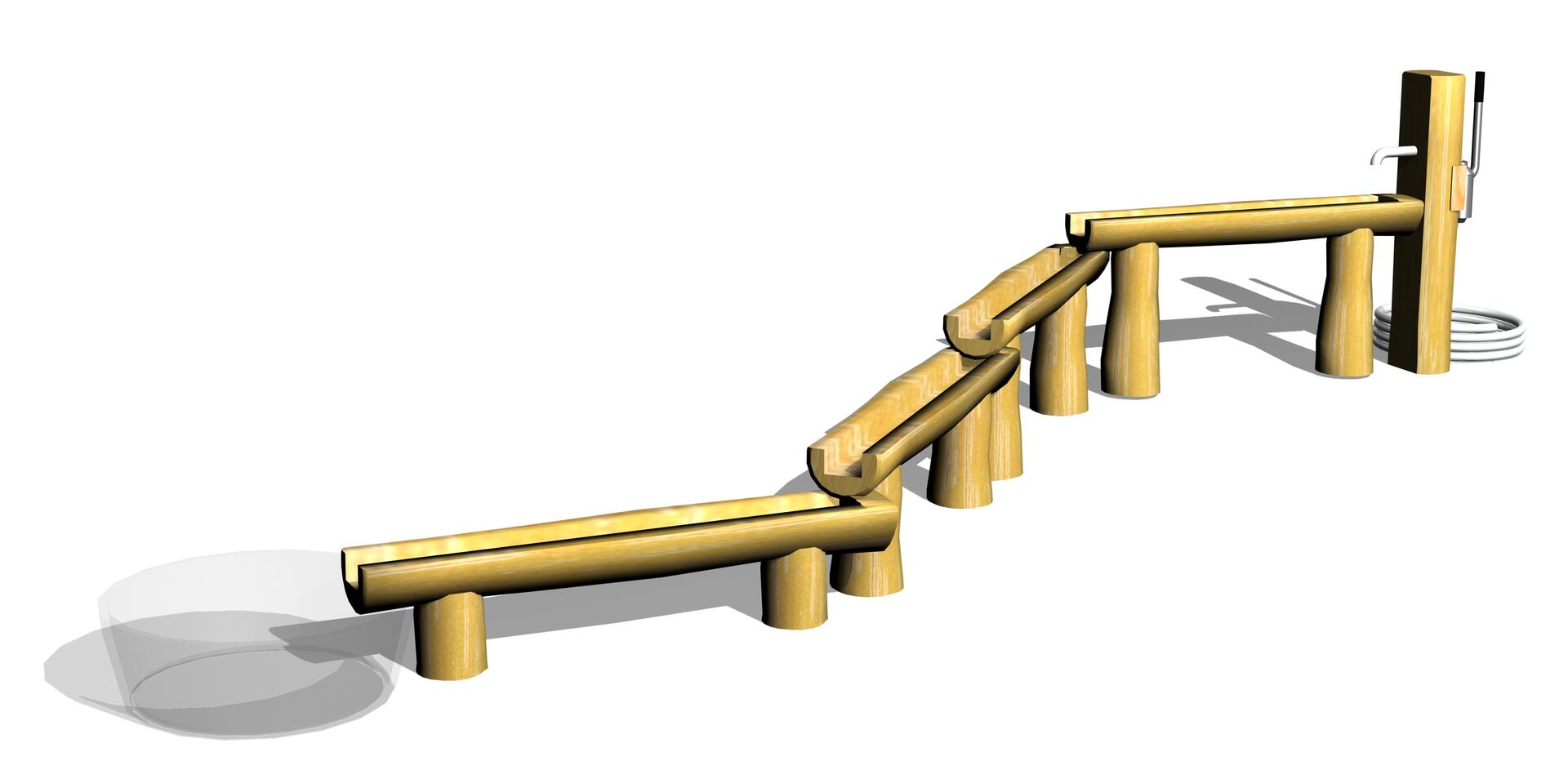Ett vattensystem med vattenrännor som kan kombineras på olika sätt i utemiljön. Tillsammans kan de bidra till rolig vattenlek som uppskattas, roar och stimulerar de flesta barn i all oändlighet. Denna kombination består av 2 öppna rännor som är 2m långa och 1 ränna som är 1m lång och har en stängd sida. Tillverkad av FSC-certifierad Robinia, ett träslag med hög motståndskraft mot väderpåverkan. Det har förmågan att absorbera minimalt med vatten och utmärker sig genom sin extremt långa hållbarhet. Monteras enligt installationsmanual.