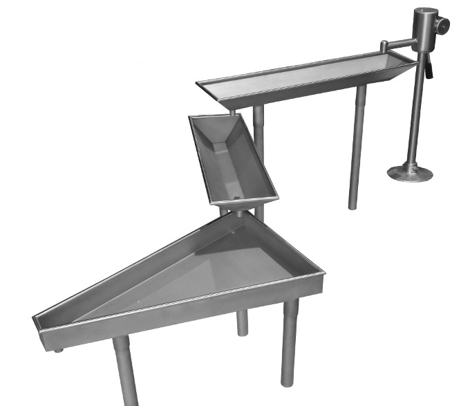Låt barnen utforska vattnets rörelse och framfart i rännan för att sedan rinna ut i detta kar. Ett modulärt system som kan byggas på efter önskemål och behov. Av rostfritt stål.