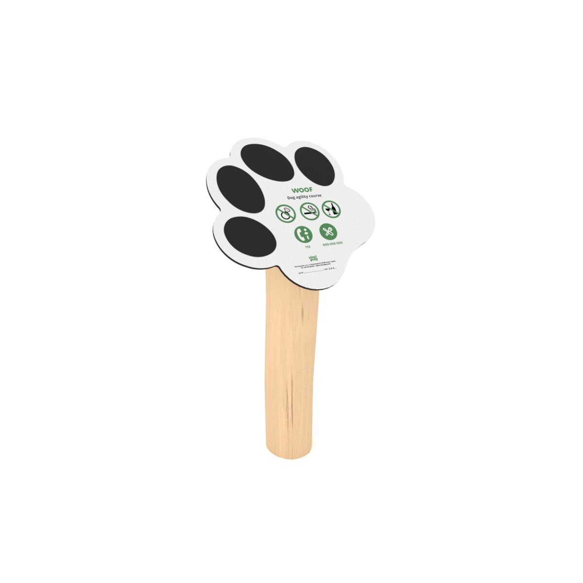 En informationstavla i tilltalande design i form av en hundtass. Stolpe av Robinia och tavla av vädertålig aluminium. Robinia är ett träslag med hög motståndskraft mot väderpåverkan. Det har förmågan att absorbera minimalt med vatten och utmärker sig genom sin extremt långa hållbarhet. Monteras enligt installationsmanual. Vid installation ska alltid den medföljande manualen användas. Den senaste versionen finns att tillgå på begäran.