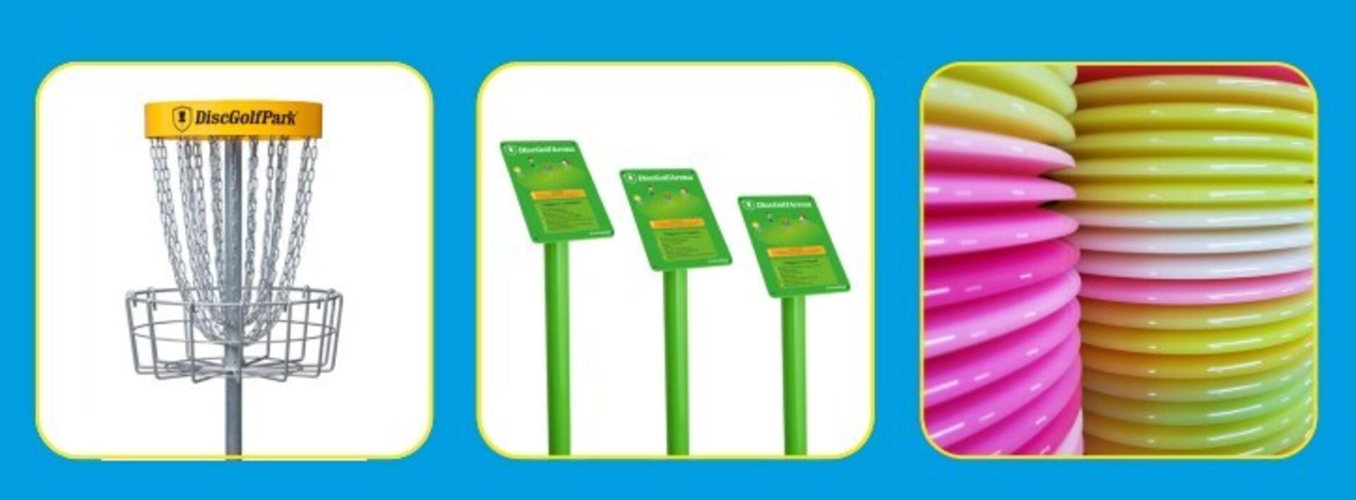 Set innehållande 3 skyltar med spelinstruktioner, 1 korg för nedgjutning samt 30 blandade discgolf-putters. Arenan består av tre olika roliga och lekfulla puttspel som illustreras på de tre olika skyltarna. Discgolfarenan kan placeras i parker, på skolgårdar eller i andra offentliga miljöer. Tack vare den flexibla designen kan den anpassas efter befintliga förutsättningar och snabbt installeras utan omfattande markarbete. Det gör detta till ett perfekt alternativ för att introducera discgolf där utrymmet är begränsat.