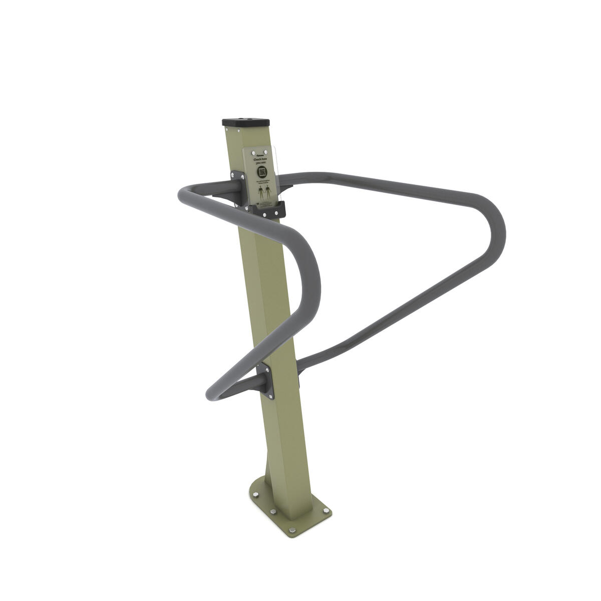 Ställning för dips som tränar bröst, främre axel och triceps. Kombinera ihop ett komplett utegym utifrån era behov och önskemål. Lekolar kan hjälpa er att ta fram en lösning som passar dig. Färgen silver har en bas i rostfritt stål. Övriga färger har en bas av pulvergalvaniserat och pulverlackerat stål. Mobilhållare i polykarbonat och HDPE. Kan ytmonteras eller gjutas ned, kontakta din säljare för rådgivning. Leverantörens artikelnummer Fitness 1117