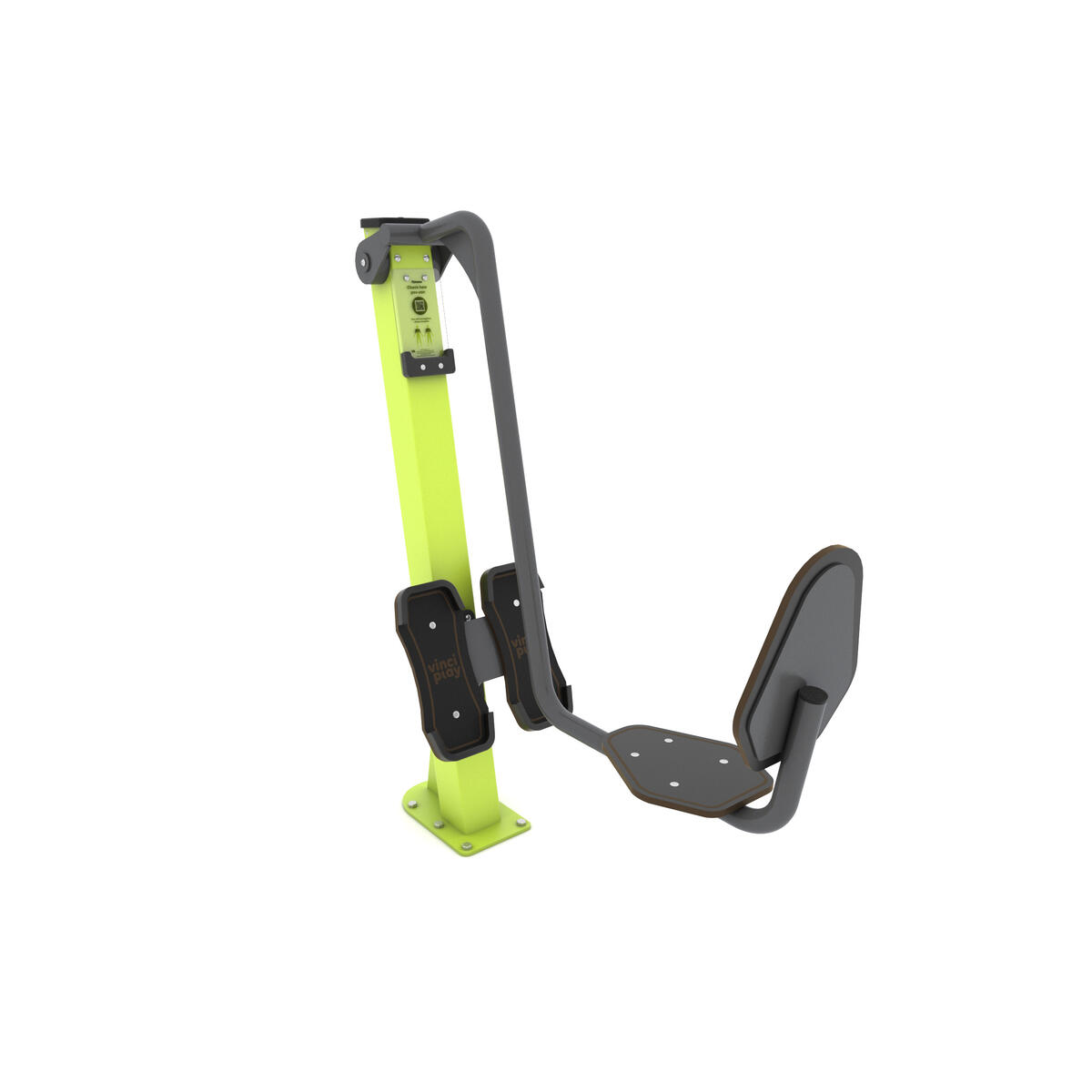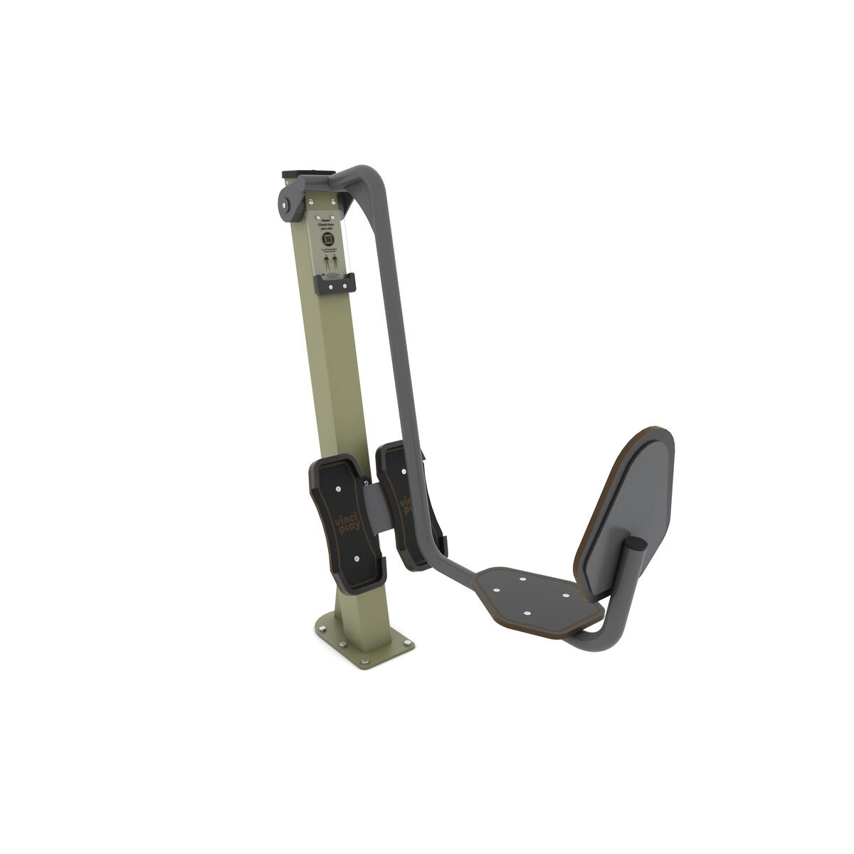 Ställning för benlyft. Tränar de raka och sneda magmusklerna. Kombinera ihop ett komplett utegym utifrån era behov och önskemål. Lekolar kan hjälpa er att ta fram en lösning som passar dig. Färg silver har bas i rostfritt stål. Övriga färger är i pulvergalvaniserat och pulverlackerat stål. Mobilhållare i polykarbonat och HDPE. Kan ytmonteras eller gjutas ned, kontakta din säljare för rådgivning. Leverantörens artikelnummer Fitness 1112