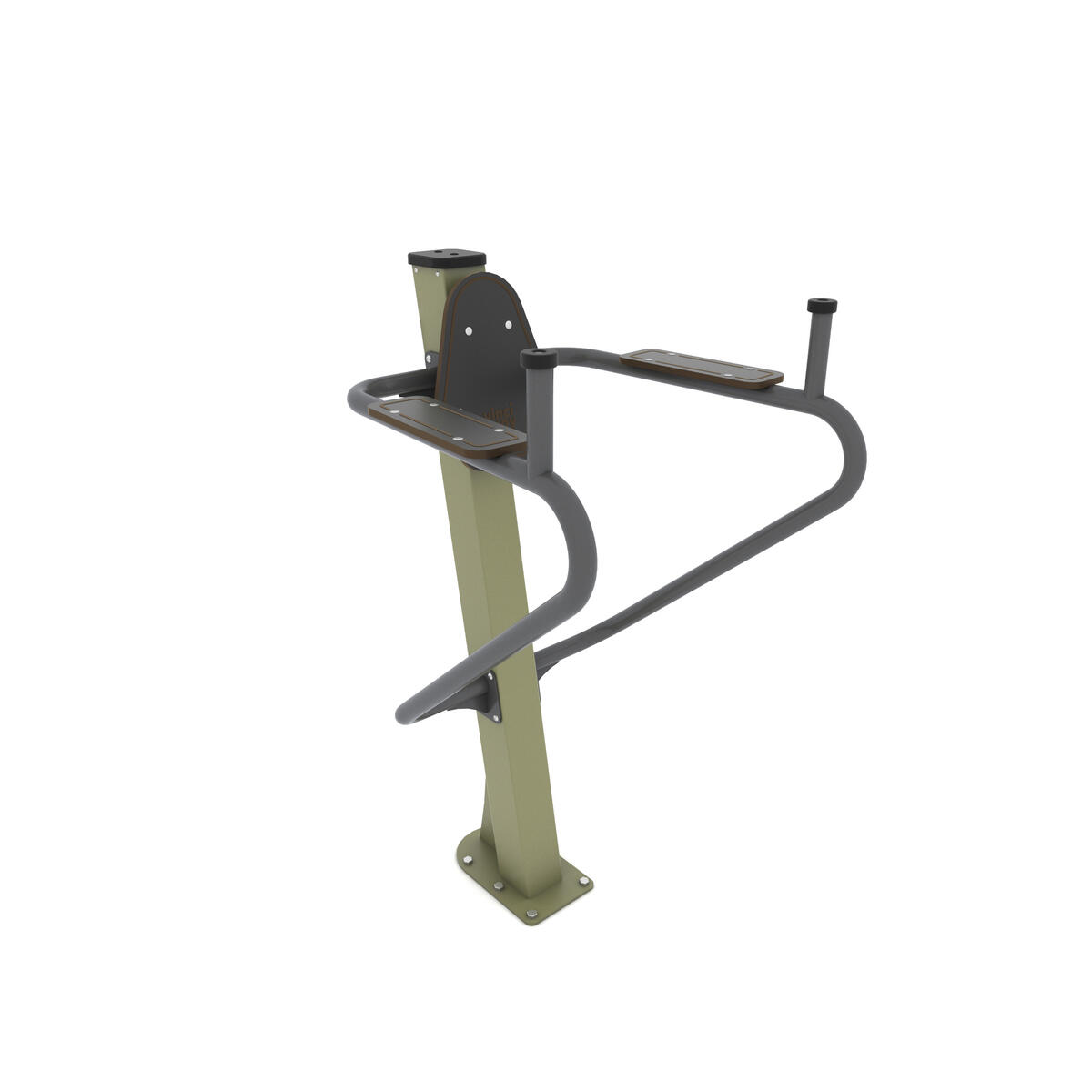 Ställning för benlyft. Tränar de raka och sneda magmusklerna. Kombinera ihop ett komplett utegym utifrån era behov och önskemål. Lekolar kan hjälpa er att ta fram en lösning som passar dig. Färg silver har bas i rostfritt stål. Övriga färger är i pulvergalvaniserat och pulverlackerat stål. Mobilhållare i polykarbonat och HDPE. Kan ytmonteras eller gjutas ned, kontakta din säljare för rådgivning. Leverantörens artikelnummer Fitness 1112