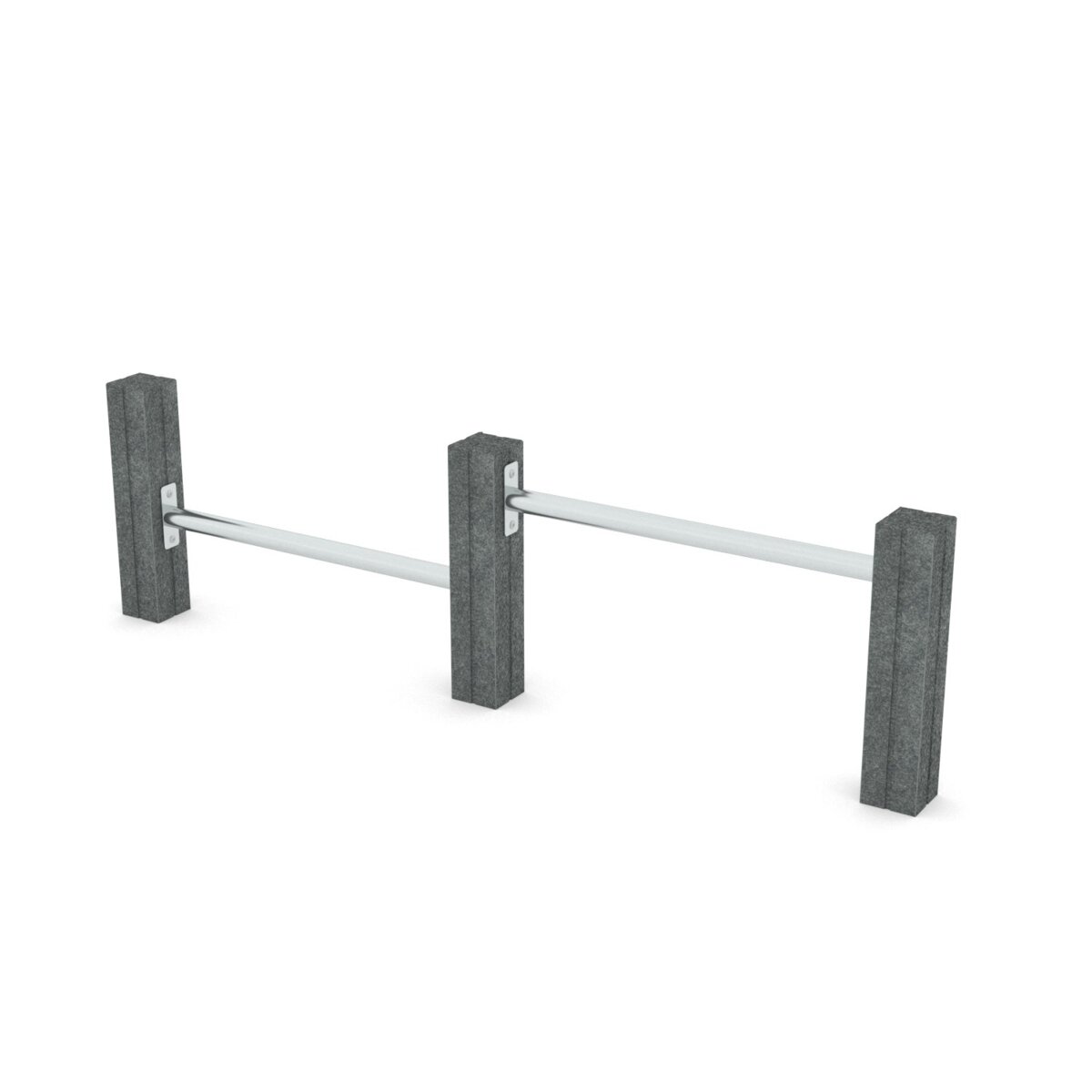 En låg gymnastikbarr med stänger i 2 olika höjder. Utformade för att träna bröst och armar med övningar som rodd, push-ups och dips. För att öva spänst och explosivitet kan stängerna användas som häckar. Denna konstruktion är baserad på återvunnet material. Alla stolpar är tillverkade av återvunnen textil. Några av många fördelar med detta material är att det inte rostar, inte absorberar vatten, är UV-resistent och ändå är lika hållbart som stål. Stålkonstruktionen är av galvaniserat och pulverlackerat stål. Monteras enligt installationsmanual. Vid installation ska alltid den medföljande manualen användas. Den senaste versionen finns att tillgå på begäran.