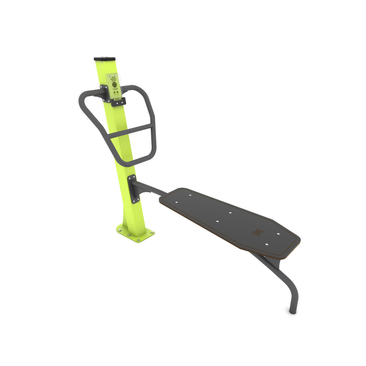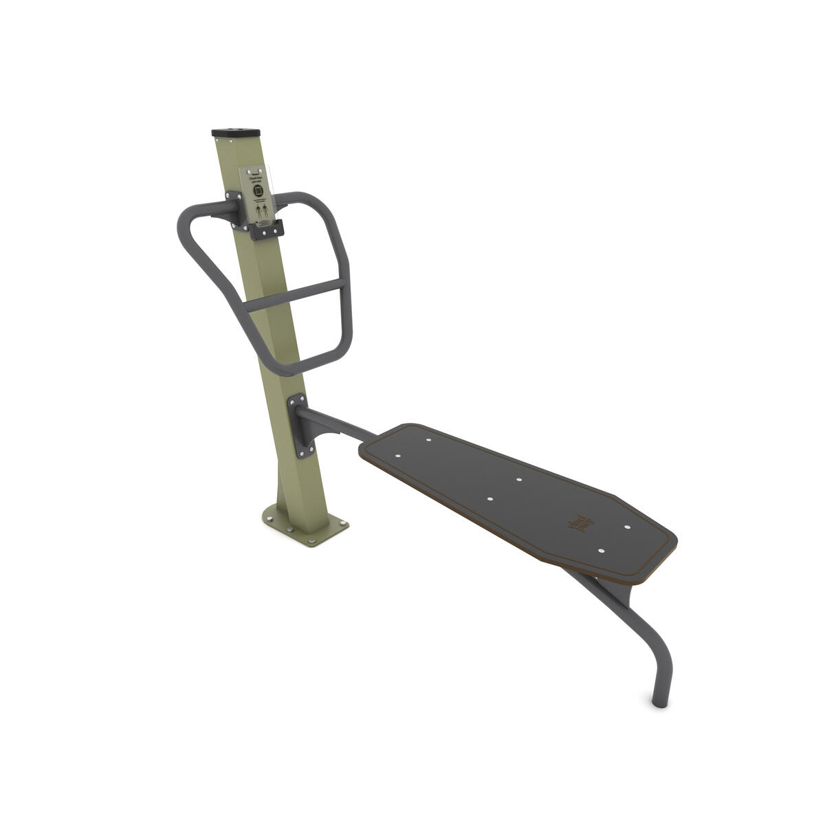 Bänk för sit-ups och andra magövningar. Kombinera ihop ett komplett utegym utifrån era behov och önskemål. Lekolar kan hjälpa er att ta fram en lösning som passar dig. Färgen silver har en bas i rostfritt stål. Övriga färger har en bas av pulvergalvaniserat och pulverlackerat stål. Mobilhållare i polykarbonat och HDPE. Kan ytmonteras eller gjutas ned, kontakta din säljare för rådgivning. Leverantörens artikelnummer Fitness 1103