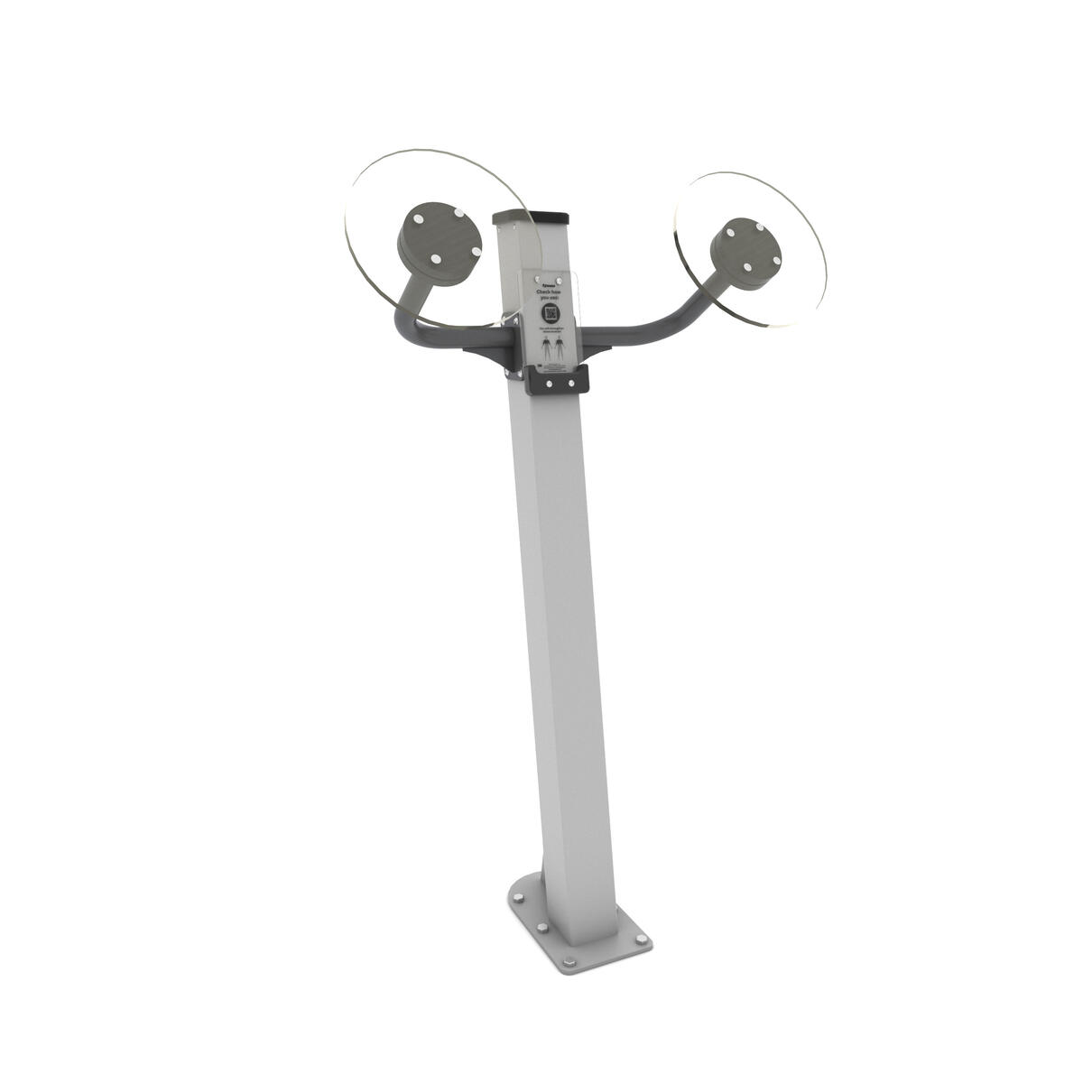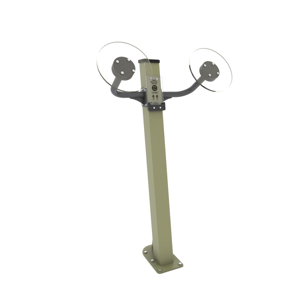 Tai-chi-hjul för koordinationsträning och rörlighet. Kombinera ihop ett komplett utegym utifrån era behov och önskemål. Lekolar kan hjälpa er att ta fram en lösning som passar dig. Färgen silver har en bas i rostfritt stål. Övriga färger har en bas av pulvergalvaniserat och pulverlackerat stål. Mobilhållare i polykarbonat och HDPE. Kan ytmonteras eller gjutas ned, kontakta din säljare för rådgivning. Leverantörens artikelnummer Fitness 1109