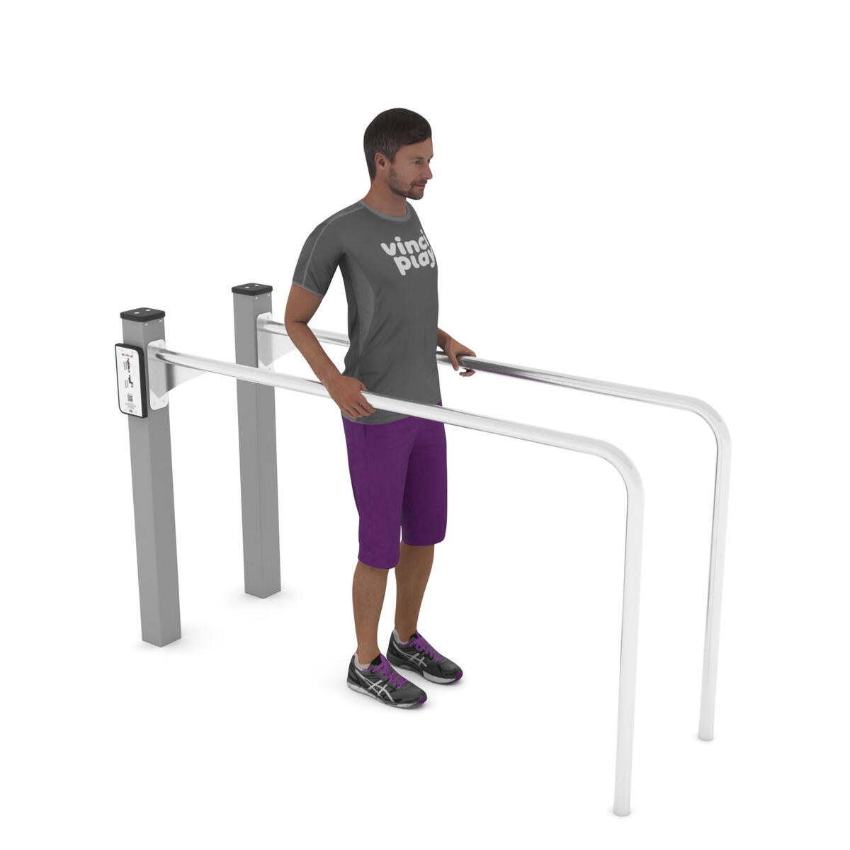 Workout är en serie träningsredskap främst avsedda för träning med kroppsvikten som utgångspunkt. Bas i pulvergalvaniserat och pulverlackerat stål. Färgen silver (-99) är tillverkad helt i rostfritt stål. Har en aluminiumskylt med träningsinstruktioner och QR-kod som leder till ett kort videoklipp med instruktioner. Leverantörens artikelnummer Workout 2302