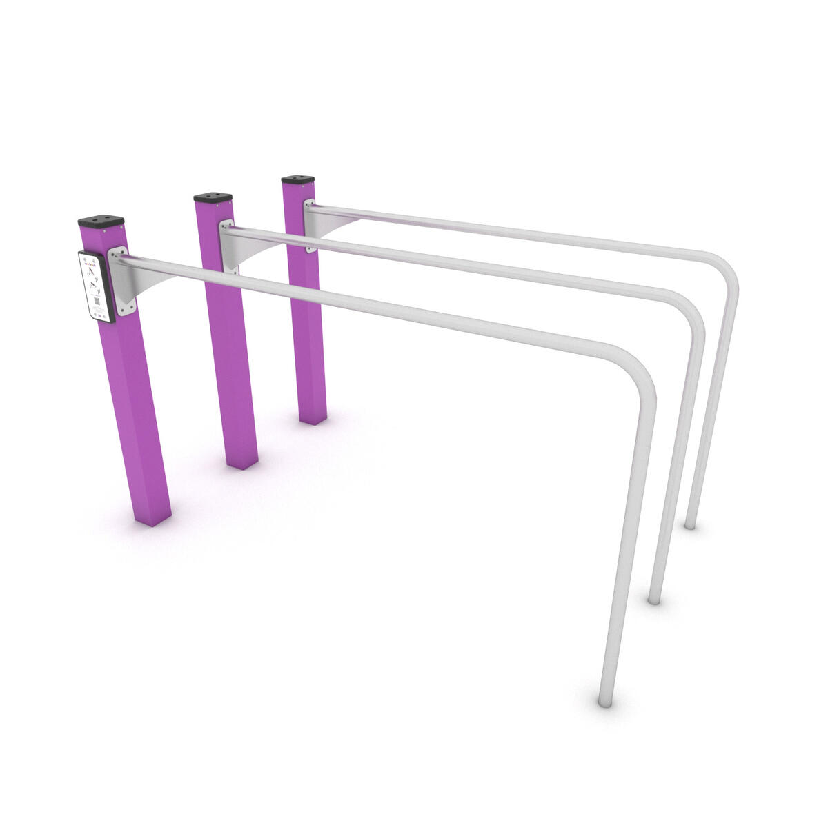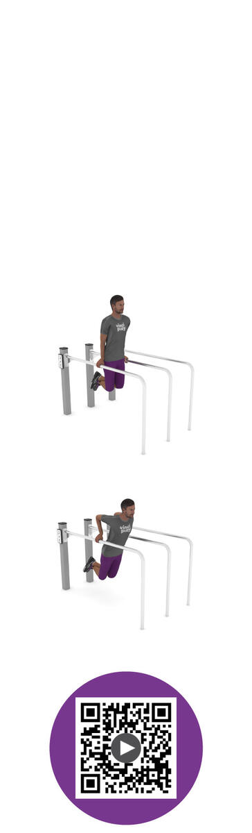 Workout är en serie träningsredskap främst avsedda för träning med kroppsvikten som utgångspunkt. Bas i pulvergalvaniserat och pulverlackerat stål. Färgen silver (-99) är tillverkad helt i rostfritt stål. Har en aluminiumskylt med träningsinstruktioner och QR-kod som leder till ett kort videoklipp med instruktioner. Leverantörens artikelnummer Workout 2303