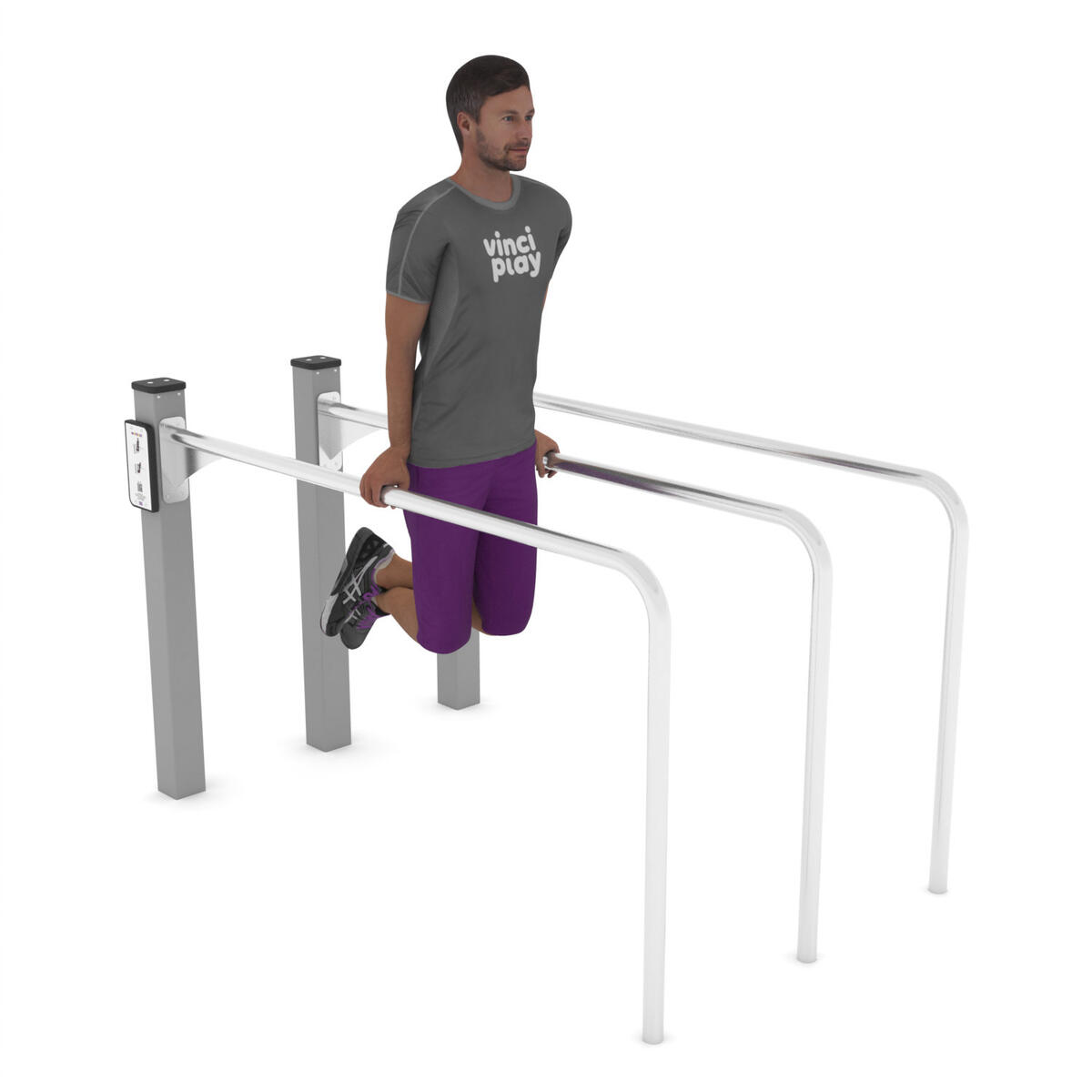 Workout är en serie träningsredskap främst avsedda för träning med kroppsvikten som utgångspunkt. Bas i pulvergalvaniserat och pulverlackerat stål. Färgen silver (-99) är tillverkad helt i rostfritt stål. Har en aluminiumskylt med träningsinstruktioner och QR-kod som leder till ett kort videoklipp med instruktioner. Sitsar och ryggstöd är tillverkade i tåligt högtryckslaminat. Leverantörens artikelnummer Workout 2305