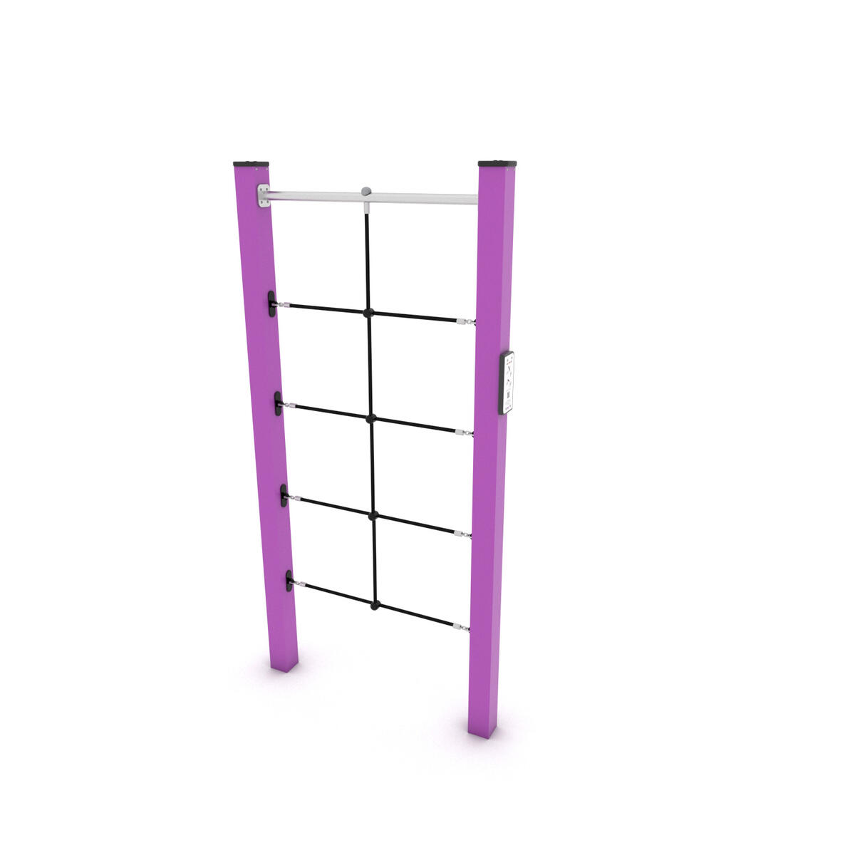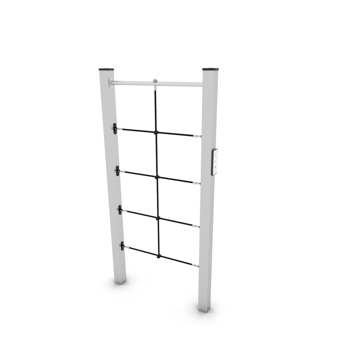 Workout är en serie träningsredskap främst avsedda för träning med kroppsvikten som utgångspunkt. Bas i pulvergalvaniserat och pulverlackerat stål. Färgen silver (-99) är tillverkad helt i rostfritt stål. Har en aluminiumskylt med träningsinstruktioner och QR-kod som leder till ett kort videoklipp med instruktioner. Stålförstärkt klätternät i polypropen. Leverantörens artikelnummer Workout 2310