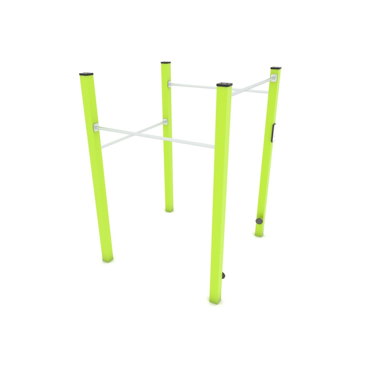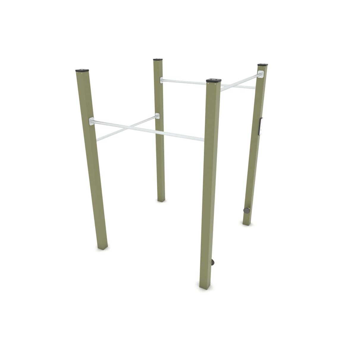Skapa en inspirerande utemiljö som både utmanar och motiverar. Workout PRO är avancerad och solid träningsutrustning där det ges möjlighet att träna allsidigt utomhus. Denna mångsidiga pull-up-station kan användas av flera personer samtidigt och för olika övningar som t.ex. pull-ups och chins. Fotstegen gör det möjligt för alla att nå stängerna, oavsett längd. Av galvaniserat och pulverlackerat stål. Tydlig instruktionskylt med grundövningar som är tryckta på vädertålig aluminium. Vid installation ska alltid den medföljande manualen användas. Den senaste versionen finns att tillgå på begäran. Inkluderar markförankring K29.