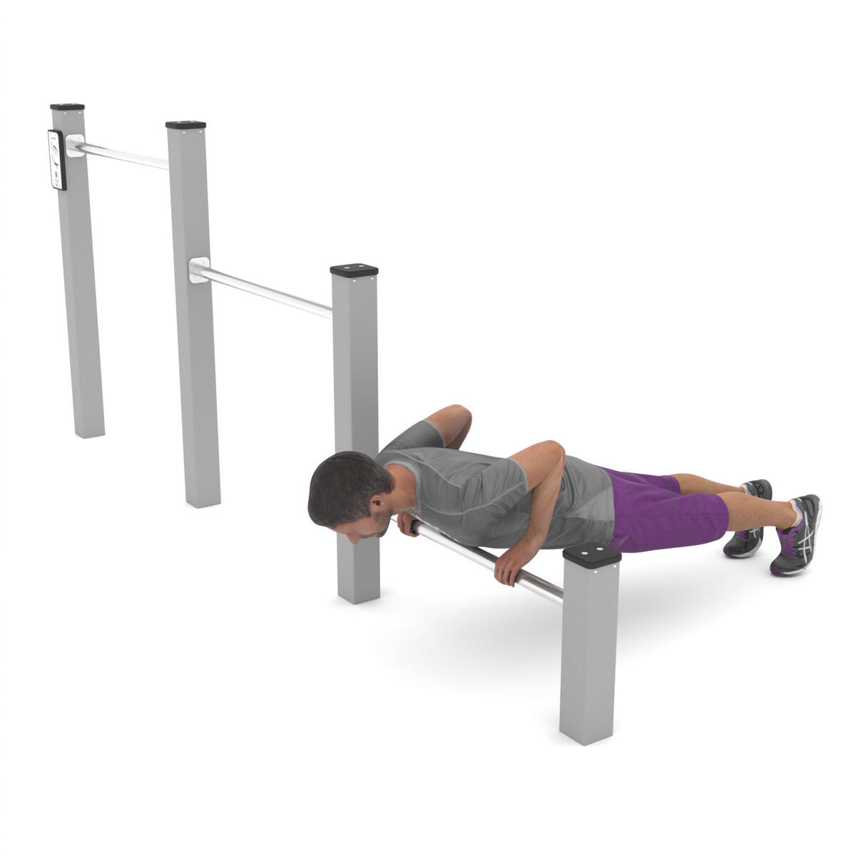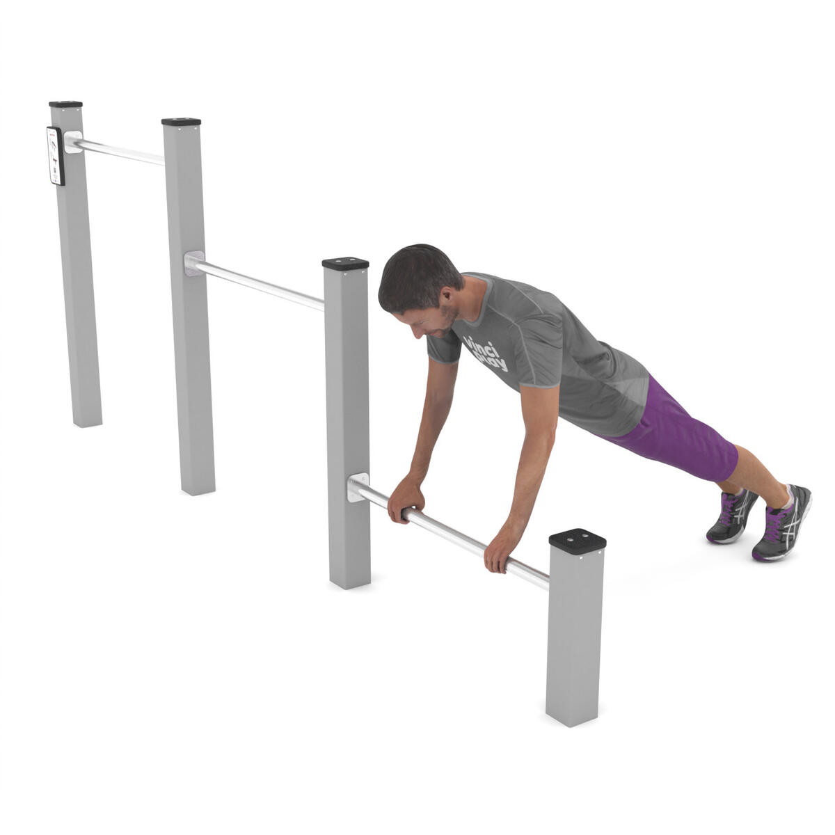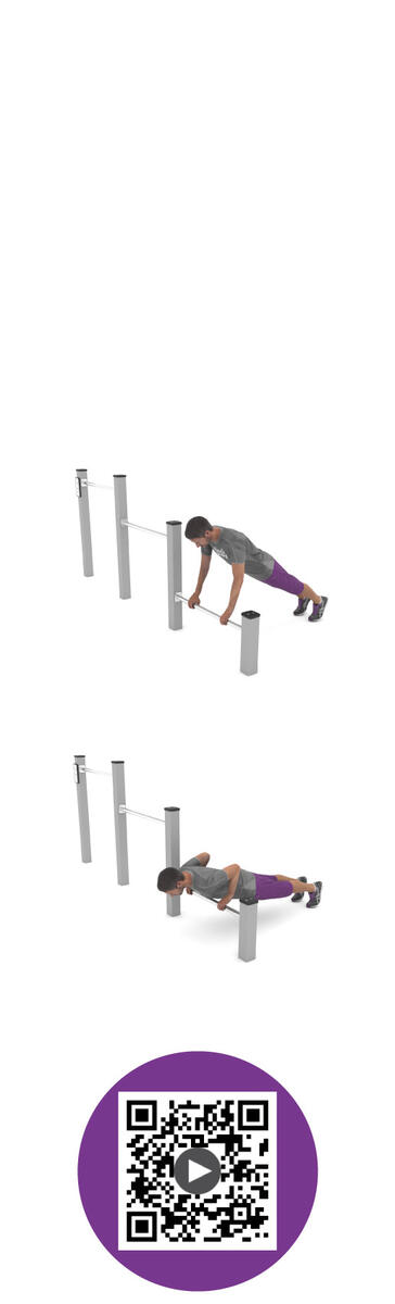 Workout är en serie träningsredskap främst avsedda för träning med kroppsvikten som utgångspunkt. Bas i pulvergalvaniserat och pulverlackerat stål. Färgen silver (-99) är tillverkad helt i rostfritt stål. Har en aluminiumskylt med träningsinstruktioner och QR-kod som leder till ett kort videoklipp med instruktioner. Leverantörens artikelnummer Workout 2302