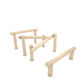Denna uppsättning med tre mångsidiga och flexibla bockar uppmuntrar till aktiv lek i utomhusmiljön. Bockarna är i 3 olika höjder och öppna för olika slags användning. Skapa en hinderbana genom att klättra, balansera eller använd för äventyrlig rollek. Tillverkade av FSC-certifierad furu som är rötskyddbehandlad. Tas in när de inte används. Höjd på bockarna är 50 cm, 64 cm och 79 cm. Köp gärna till plank 161298 för att utöka möjligheterna till en varierad hinderbana.