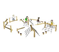 Balansstockar med rep och plattor. Rep i stål, täckt med flätad polypropen. Plattor i halkfritt HT-laminat. Bas i Robinia, ett träslag som är väderbeständigt, tar upp lite vatten och är extremt hållbart. Vid installation ska alltid den medföljande manualen användas. Den senaste versionen finns att tillgå på begäran. Leverantörens artikelnummer Robinia RB1273