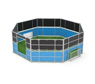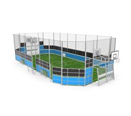 Multiarena, spelplansmått 7 x 15 m, huvudutförande i stål, detaljer i andra material accepteras. Inklusive 2 st integrerade fasta fotbollsmål på kortsidor och basketkorg monterad över respektive fotbollsmål. Ingående komponenter uppnår BVB Accepteras.