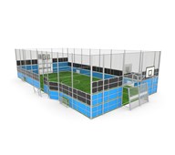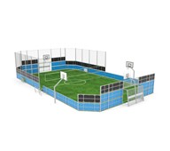Multiarena, spelplansmått 7 x 15 m,i stål och trä med paneler i trä. Inklusive 2 st integrerade fasta fotbollsmål på kortsidor och basketkorg monterad över respektive fotbollsmål. Ingående komponenter uppnår BVB Accepteras.