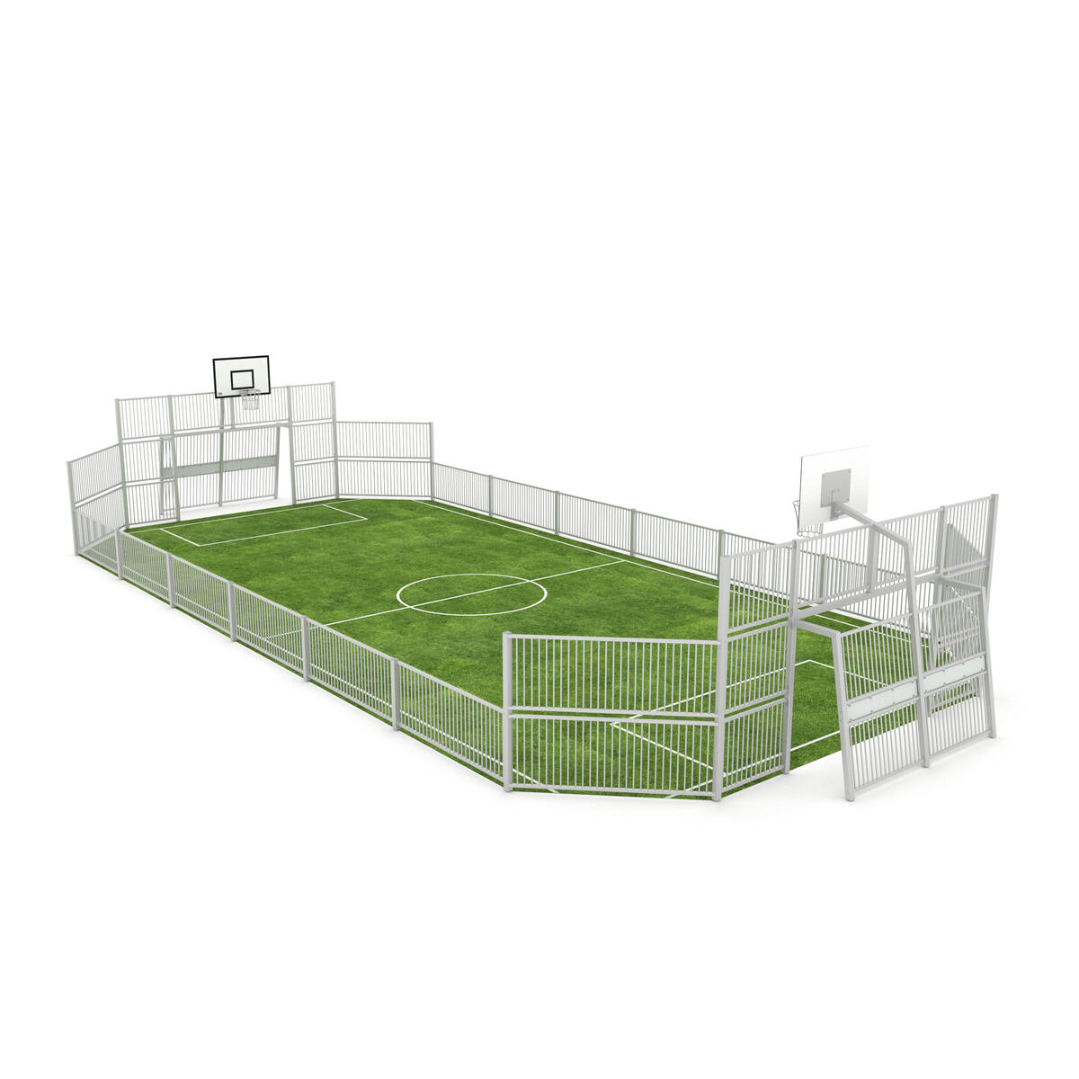 En multisportarena skapar möjligheter till spontan rörelse och aktivitet och blir en naturlig samlingsplats för alla åldrar. Denna arena är utrustad med 2 mål med måtten 320x110x210 cm och 2 basketmål ovanför med en höjd på 385 cm. Multiarenorna kan beställas i standardmått, eller efter specifika önskemål gällande mått och material. Kontakta våra säljare för pris och för att få en multisportsarena som passar just er. Vid installation ska alltid den medföljande manualen användas. Den senaste versionen finns att tillgå på begäran.