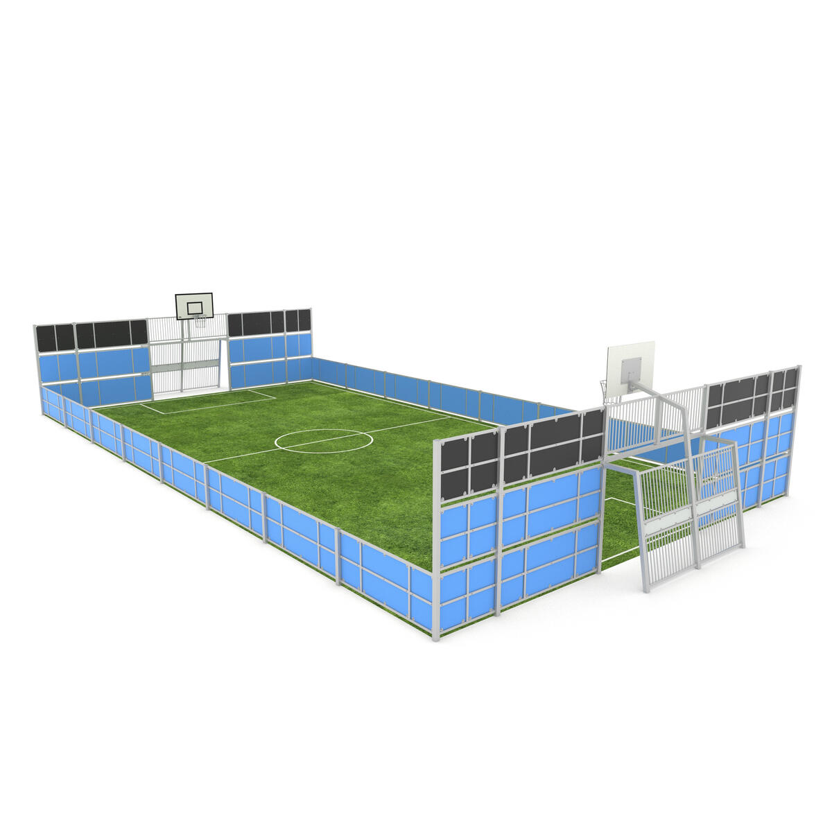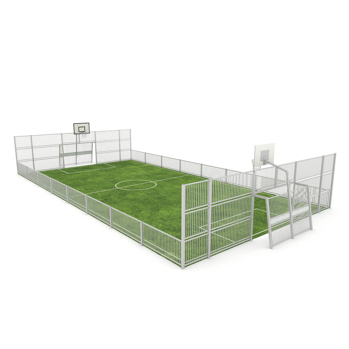 En multisportarena skapar möjligheter till spontan rörelse och aktivitet och blir en naturlig samlingsplats för alla åldrar. Denna arena är utrustad med 2 mål med måtten 320x110x210 cm och 2 basketmål med en höjd på 385 cm. Multiarenorna kan beställas i standardmått, eller efter specifika önskemål gällande mått och material. Kontakta våra säljare för pris och för att få en multisportsarena som passar just er. Vid installation ska alltid den medföljande manualen användas. Den senaste versionen finns att tillgå på begäran.