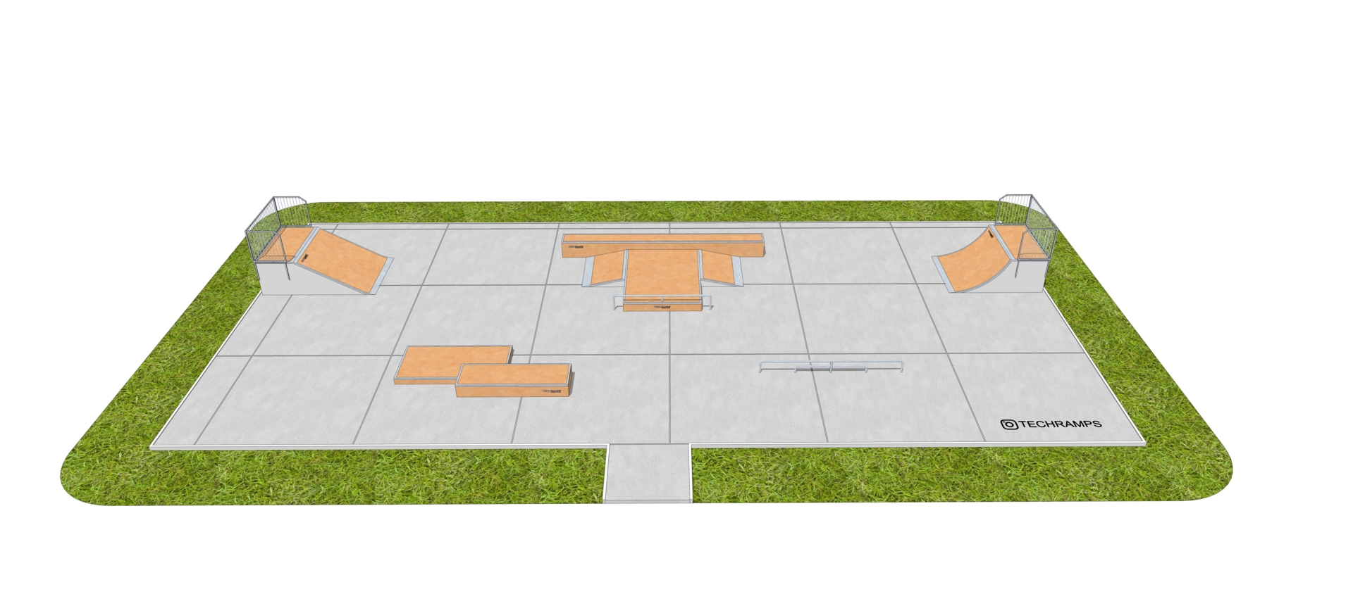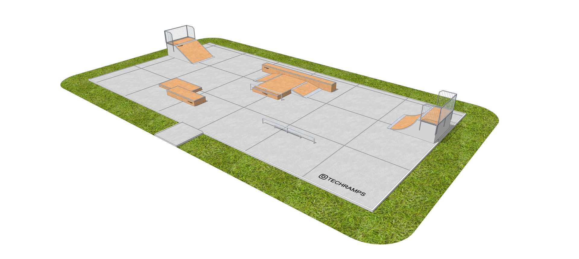 Ett mycket stort paket med utmaningar för både nybörjare och mer erfarna skateåkare rullskridskoåkare, och BMX-cyklister. Med en mångsidighet och ramper som är 1,5 m höga skapas möjligheter för att utföra avancerade tricks på hindren. Paketet består av Quarter Pipe med Bankramp, Funbox med Hubba, Pyramid och Quarter Pipe, en 4 m lång Straight rail, Grindbench, Miniramp, en bred plattform med Bank ramp, trappor och Hubba. Av vattentålig plywood med ljuddämpande membran och en speciell yta kallad RampLine, som är underhållsfri, stötdämpande, snabbtorkande, halk- och frostsäker. Grindbench och Straight rail är av galvaniserat stål. TÜV-certifierad. Alla ramper och hinder levereras delmonterade.