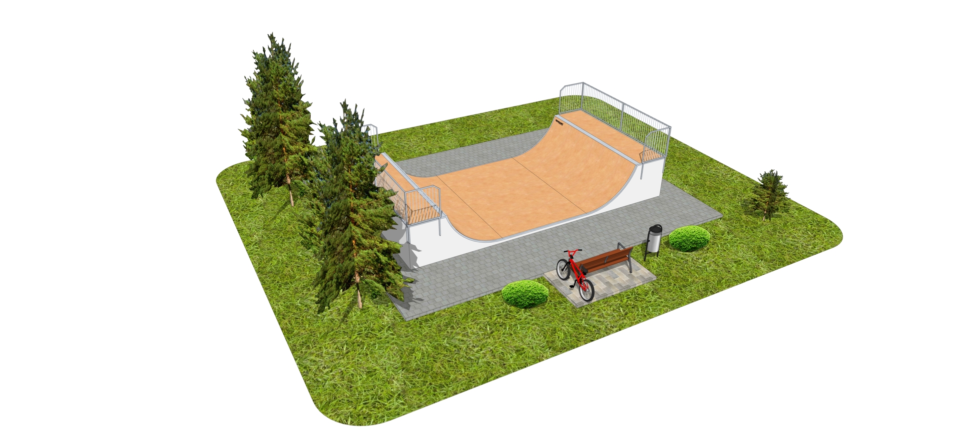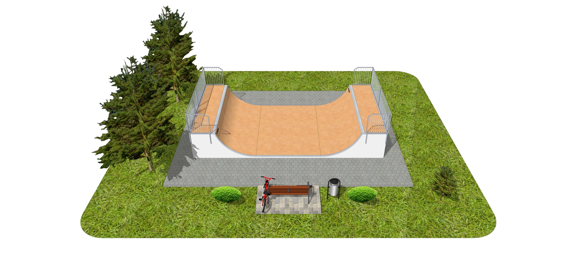En skateramp som kan användas både som fristående aktivitet och som del av ett större skateområde, i en park eller på en idrottsplats. Denna miniramp är 1,5 m hög och av solid kvalitet med bra grepp och känsla och passar för både BMX, sparkcykel, skateboard och inlines. Passar såväl nybörjare som vana skateboardåkare. Konstruktionen är gjord av kraftig och vattentålig plywood med ljuddämpande membran och en speciell yta kallad Ramp-Line, som är underhållsfri, stötdämpande, snabbtorkande, halk-och frostsäker. TÜV-certifierad.