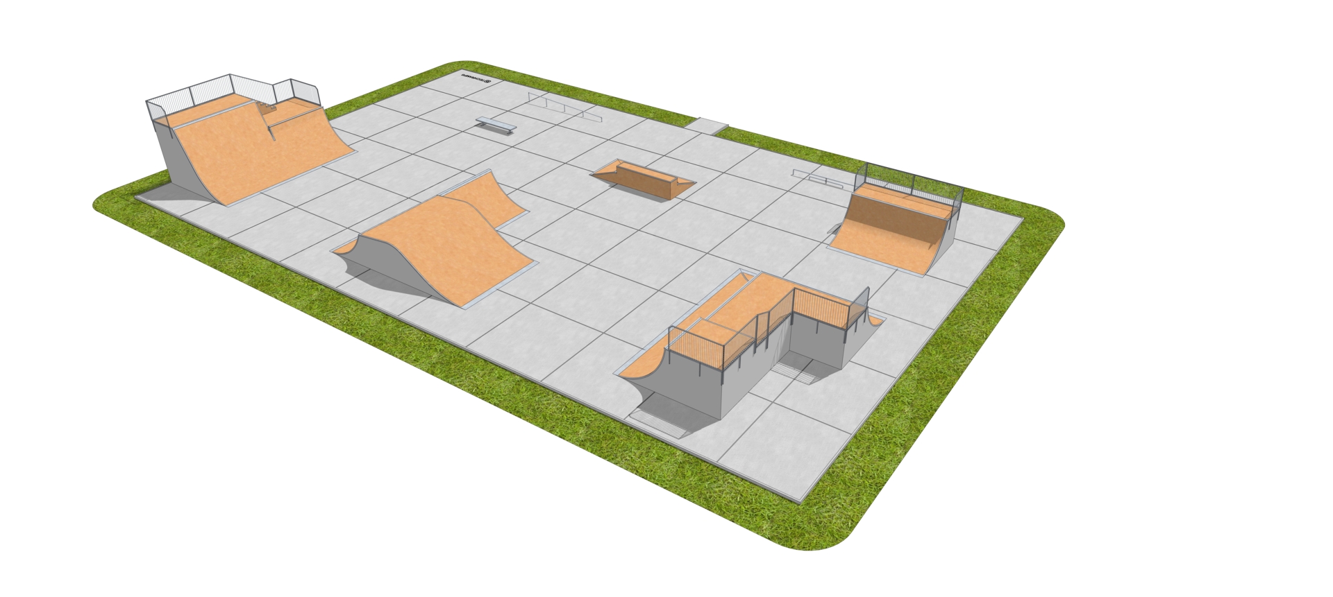 Ett paket med olika ramper och en stor pumptrack som tillfredsställer många användares önskemål, både nybörjare och de mer erfarna åkarna som vill utföra tricks, hopp och volter. Detta skatepaket består av en Pumptrackbana, Ouarter Pipe, Funbox med Hubba och Rail, Bankramp, Grindbench samt en 3 m lång Straight rail. Bank ramp, Quarter Pipe, Funbox och Grindbox är av kraftig, vattentålig plywood med ljuddämpande membran och en speciell yta kallad RampLine, som är underhållsfri, stötdämpande, snabbtorkande, halk- och frostsäker. Straight rail och Grindbench är tillverkade av galvaniserat stål. TÜV-certifierad. Alla ramper och hinder levereras delmonterade.