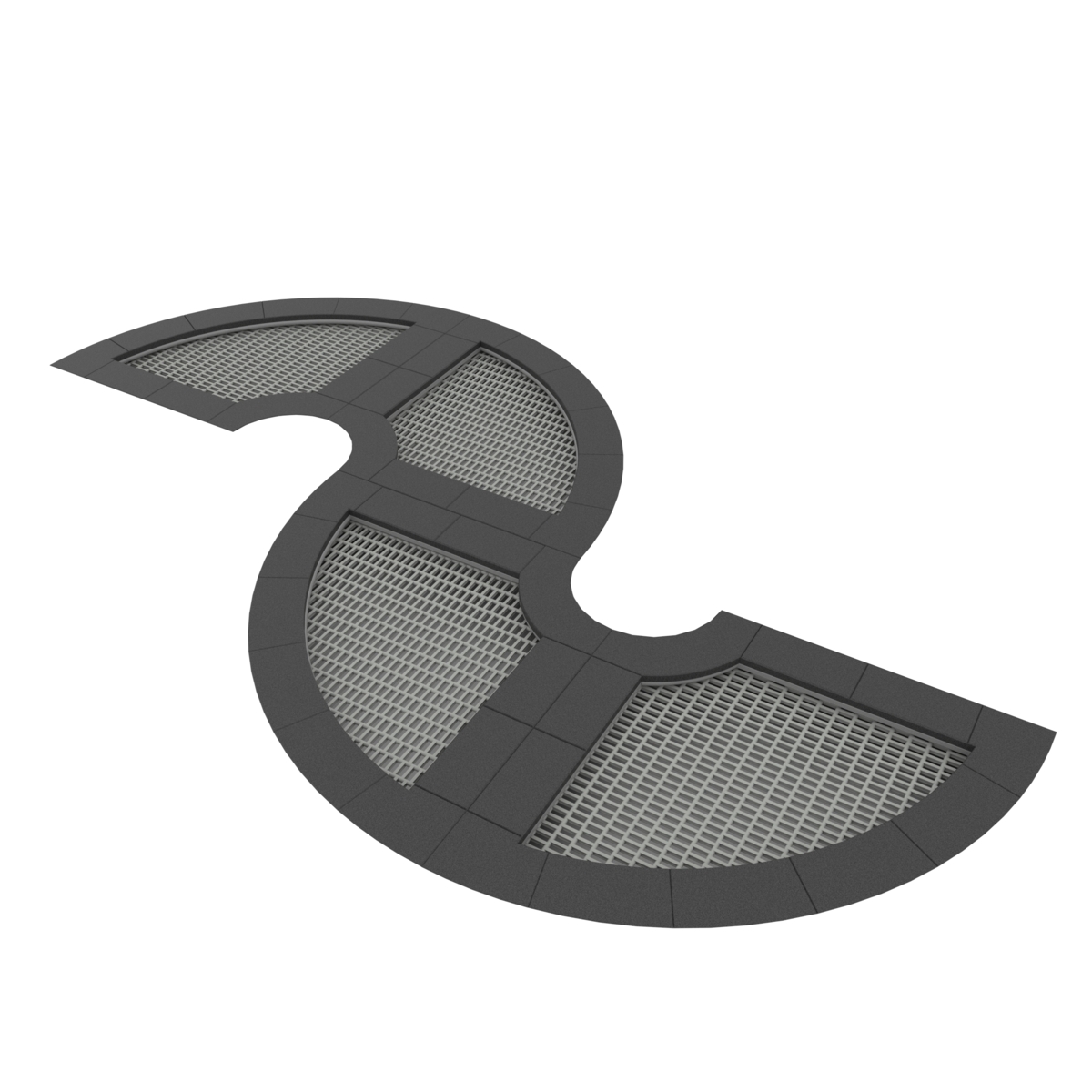 Fyra sammansatta trampoliner för nedgrävning. Se produktblad för materialspecifikation. Vid installation ska alltid den medföljande manualen användas. Den senaste versionen finns att tillgå på begäran.
