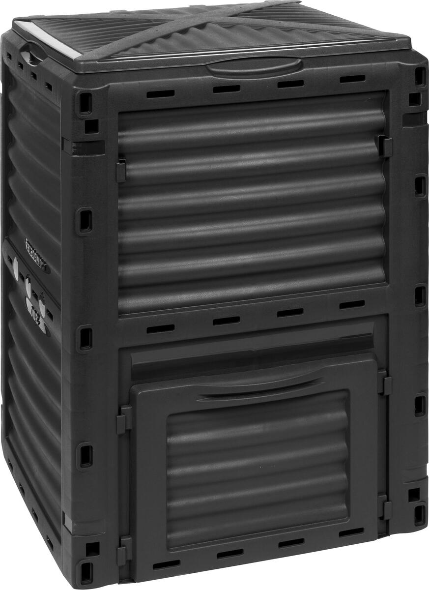En praktisk och smidig kompost för trädgårdsavfall och efterkompostering. Utformad för optimal luftcirkulation som gynnar komposteringsprocessen. Komposten har en sidolucka som enkelt öppnas för tömning. Volym 300 l. Mått: 83x61x61 cm.
