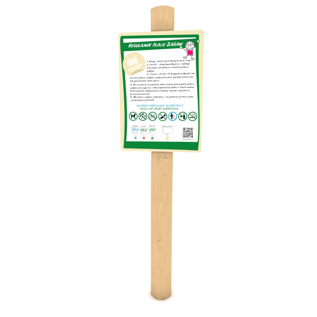 Impregnerad furu. Kan fås med önskad text enligt mall Regelskylt_lekplats under dokument och filer. Kontakta kundtjänst vid beställning. Vid installation ska alltid den medföljande manualen användas. Den senaste versionen finns att tillgå på begäran. Leverantörens artikelnummer Park WD1483
