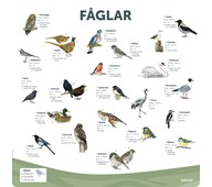 Denna utomhustavla har motiv som visar 22 fotografiska bilder på fåglar som finns i den svenska naturen. På tavlan finns också fakta som djurets namn, vingbredd, kullstorlek och var den lever. Barnen kan med hjälp av sina sinnen lyssna på fågelsången och med hjälp av tavlorna hitta motsvarande fågel och träna på att benämna den korrekt. Att finna platser i utomhusmiljön där det sker ett växelspel mellan teori och praktik skapar goda förutsättningar för lärande. Tavlan passar bra att hänga på väggar, staket, i uteklassrum och lockar till lärande samtidigt som den gör gården mer attraktiv. Tavlan är mycket robust och grafiken är tryckt på en UV-beständig 3 mm tjock aluminiumplatta. Levereras med förborrade hål för en enkel montering.