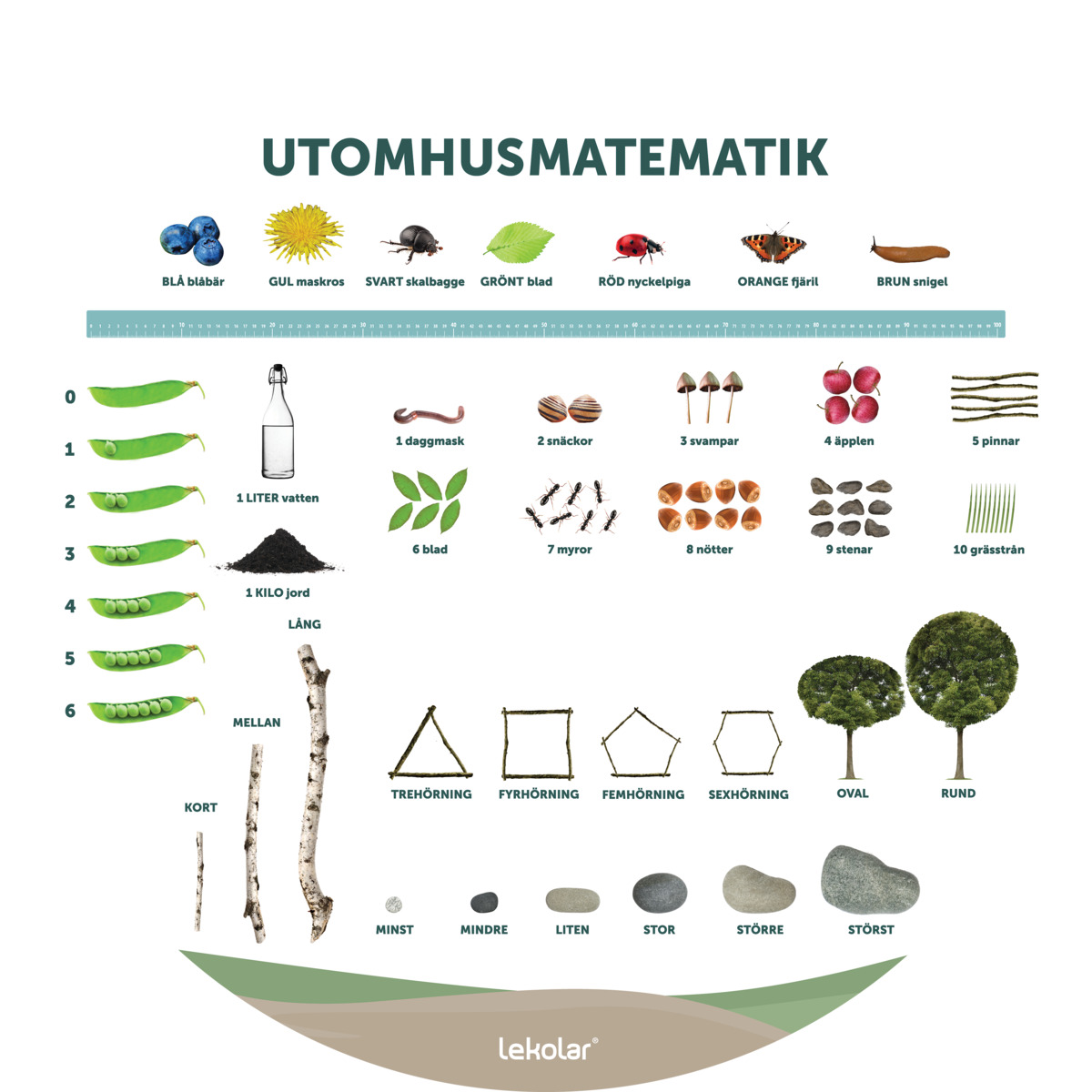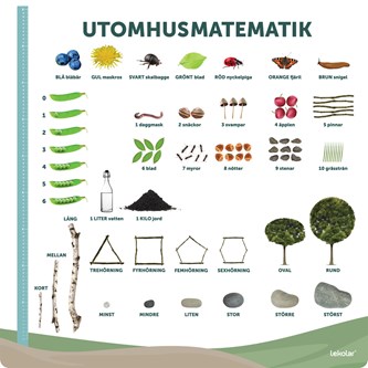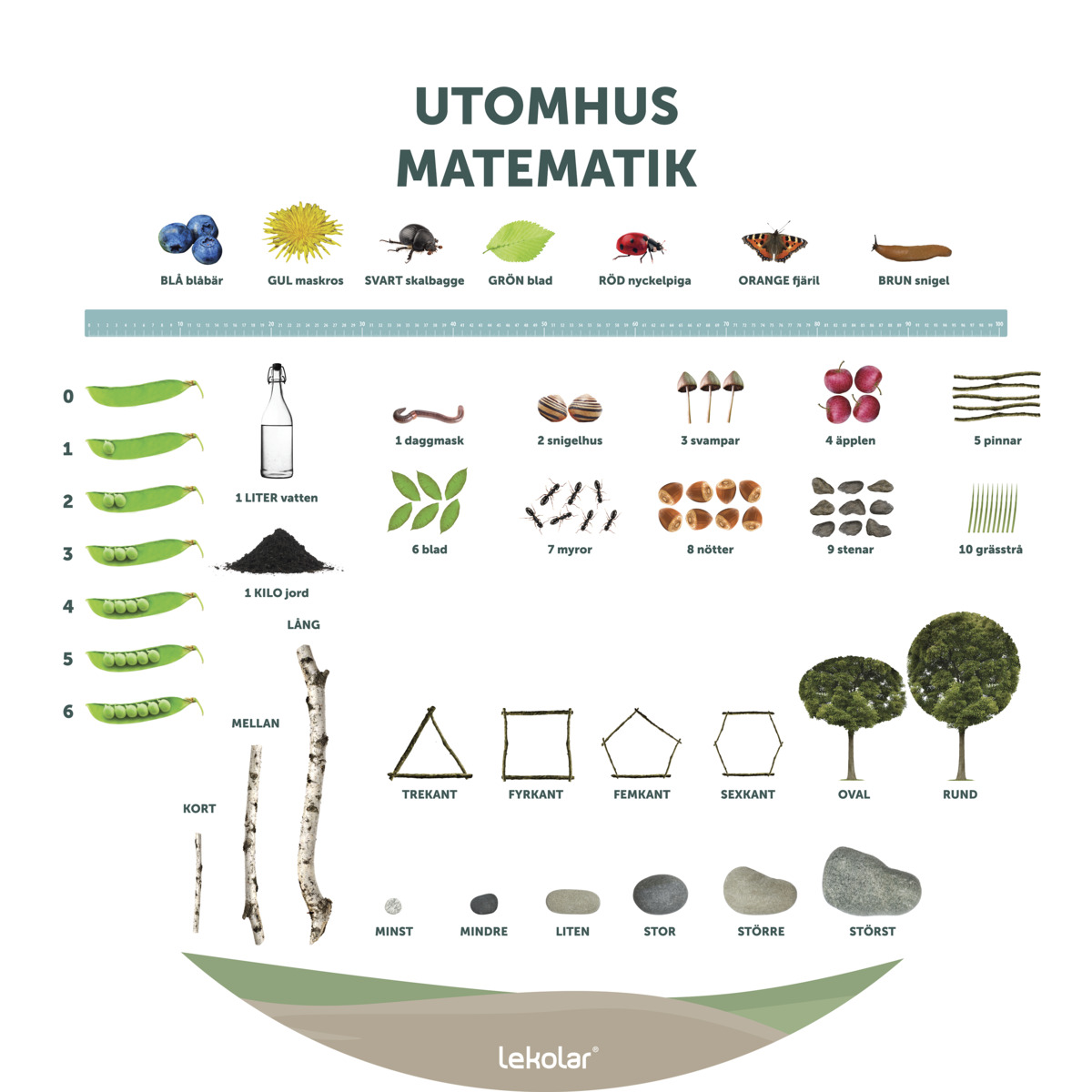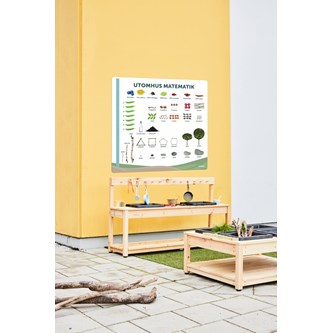 I vår utemiljö finns mycket räkna och denna tavla hjälper till med att synliggöra matematiken utomhus. Skapa olika lustfyllda aktiviteter och träna siffror, antal, former och matematiska begrepp. Att finna platser i utomhusmiljön där det sker ett växelspel mellan teori och praktik skapar goda förutsättningar för lärande. Genom att använda sig av naturen och dess material väcks barnens nyfikenhet om sin närmiljö. Tavlan passar bra att hänga på väggar, staket, i uteklassrum och lockar till lärande samtidigt som det gör gården mer attraktiv. Tavlan är mycket robust och grafiken är tryckt på en UV-beständig 3 mm tjock aluminiumplatta. Levereras med förborrade hål för en enkel montering.