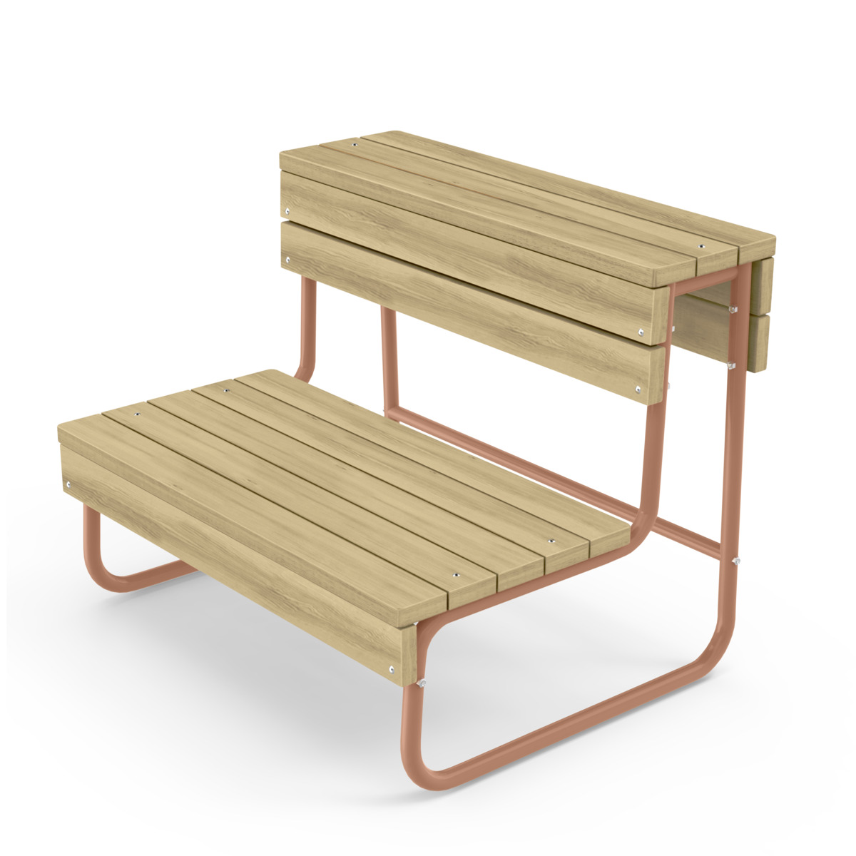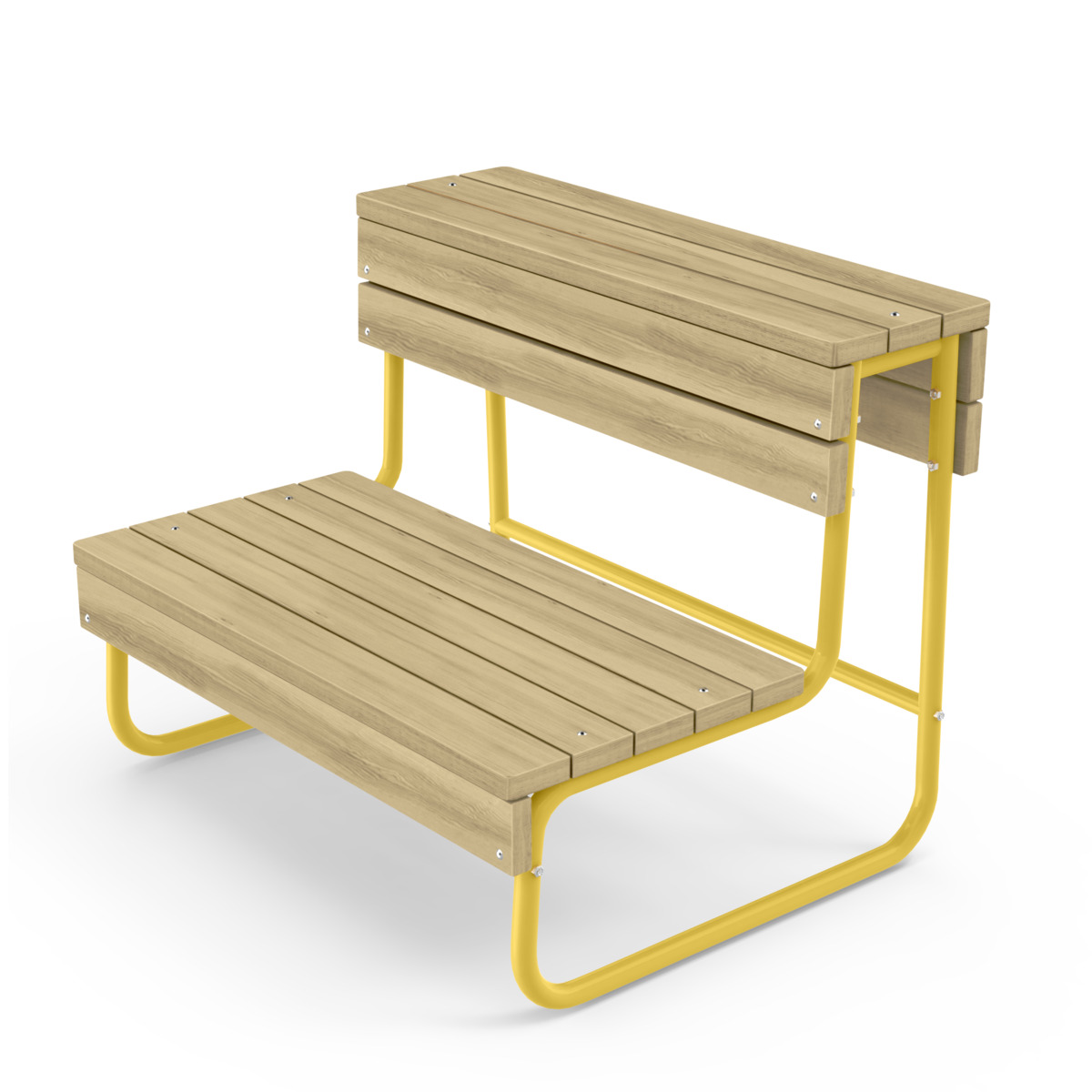 Skapa en härlig mötesplats för skönt häng i utemiljön och där mötesplatsen även kan fungera som en lärmiljö. Genom att erbjuda en permanent mötesplats på gården underlättar man för verksamheten vid de tillfällen som man vill förflytta lärandet utomhus. Kombinera våra sittmoduler i olika formationer så kan mötesplatsen anpassas efter era behov och önskemål. Med hörmodulen i två nivåer kan man skapa en U formad sittning som passar utmärkt för presentationer, framträdande eller gruppdiskussioner. Det krävs två hörnmoduler för att bilda en rät vinkel. Stativet på bänkarna går att få lackerade i åtta olika färger eller enbart varmförzinkat, de lackerade stativen är först varmförzinkade. Trä av oljad furu. Vi rekommenderar behandling med vattenbaserad träolja innan användning utomhus. Upprepa behandlingen vid behov. Välj alternativ för nedgrävning eller ytmontering